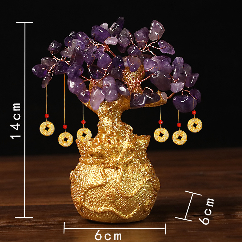 厂家直销批发黄水晶树钱袋树发财树摇钱树商务工艺礼品摆件