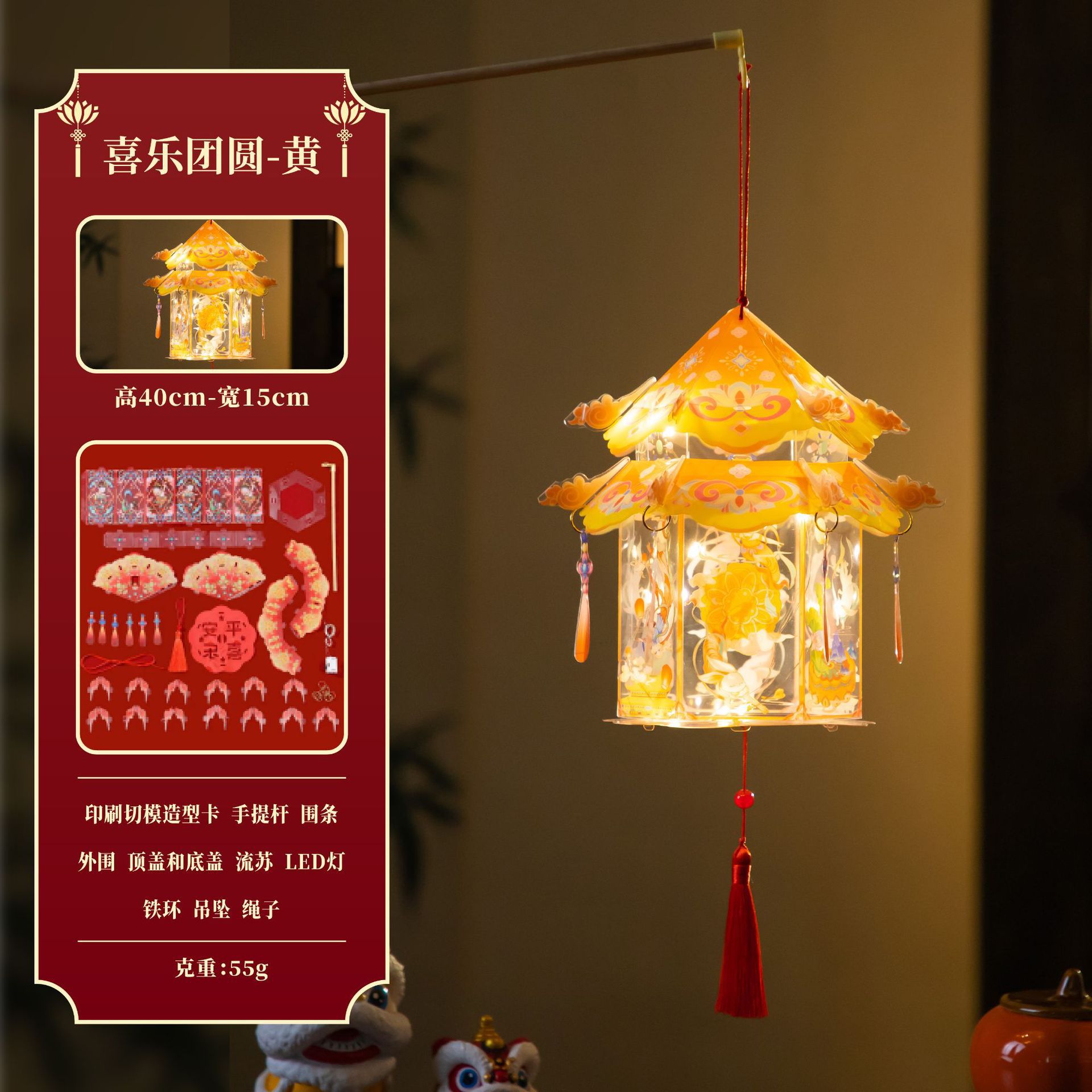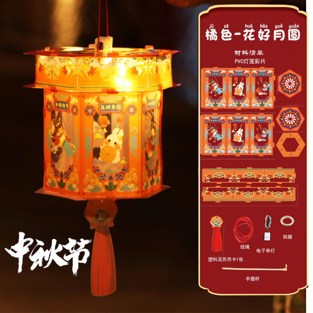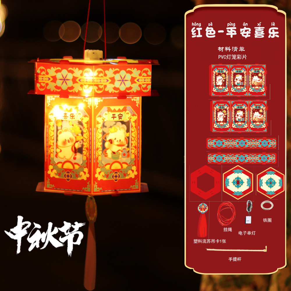 新年春节花灯手提灯笼儿童卡通灯笼创意手工diy材料包灯笼花灯