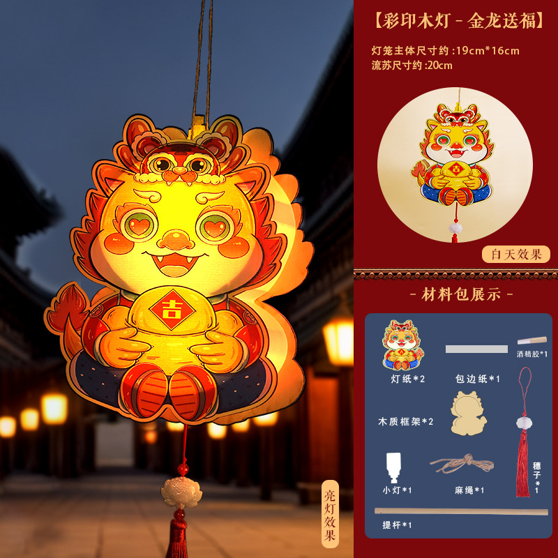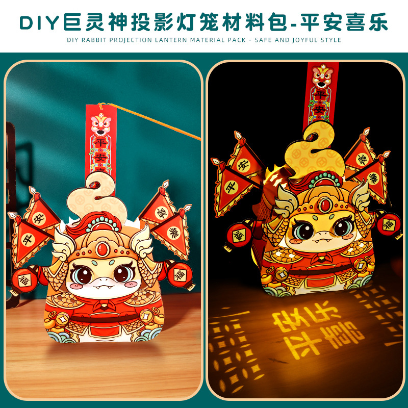 元旦节马年灯笼批发儿童手提小花灯材料包手工diy发光投影纸灯笼