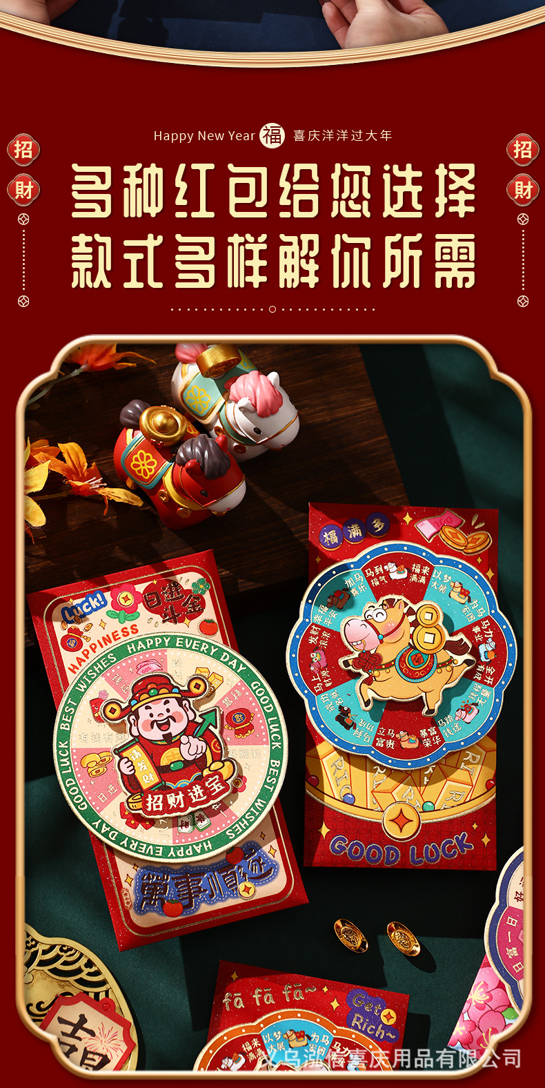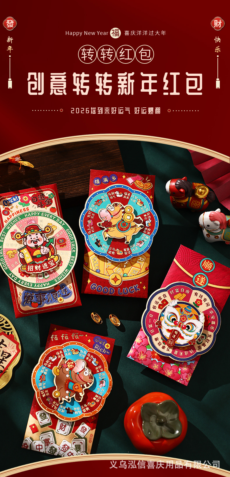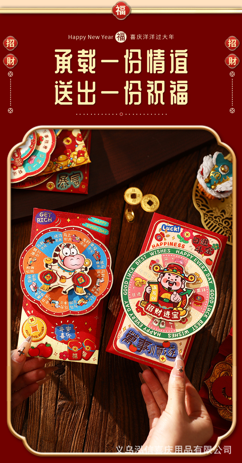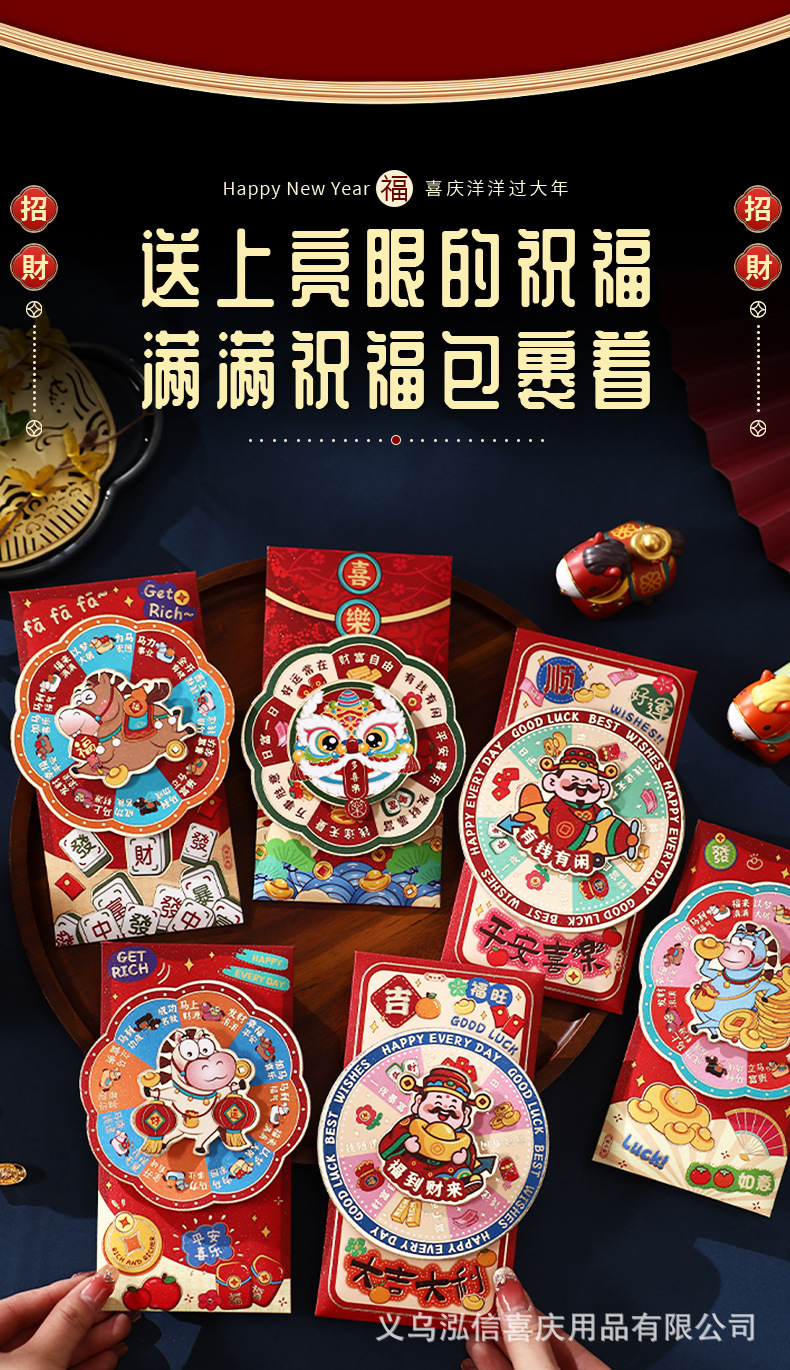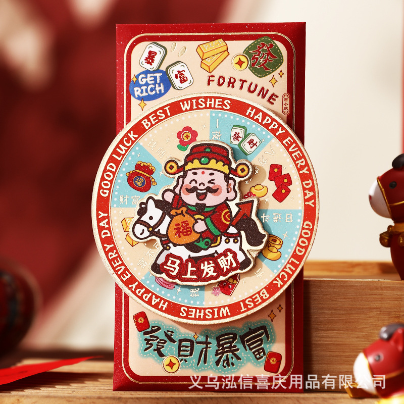 2026转转红包马年新款财神卡通春节转盘红包创意个性新年红包批发
