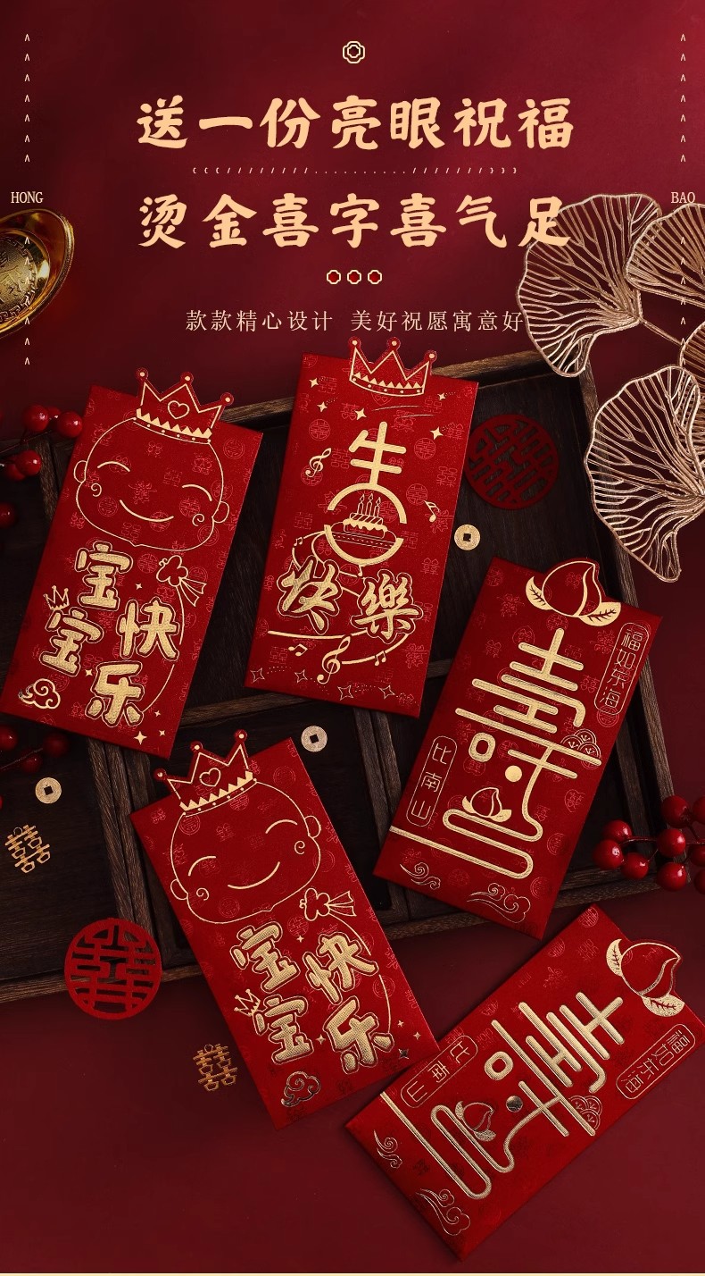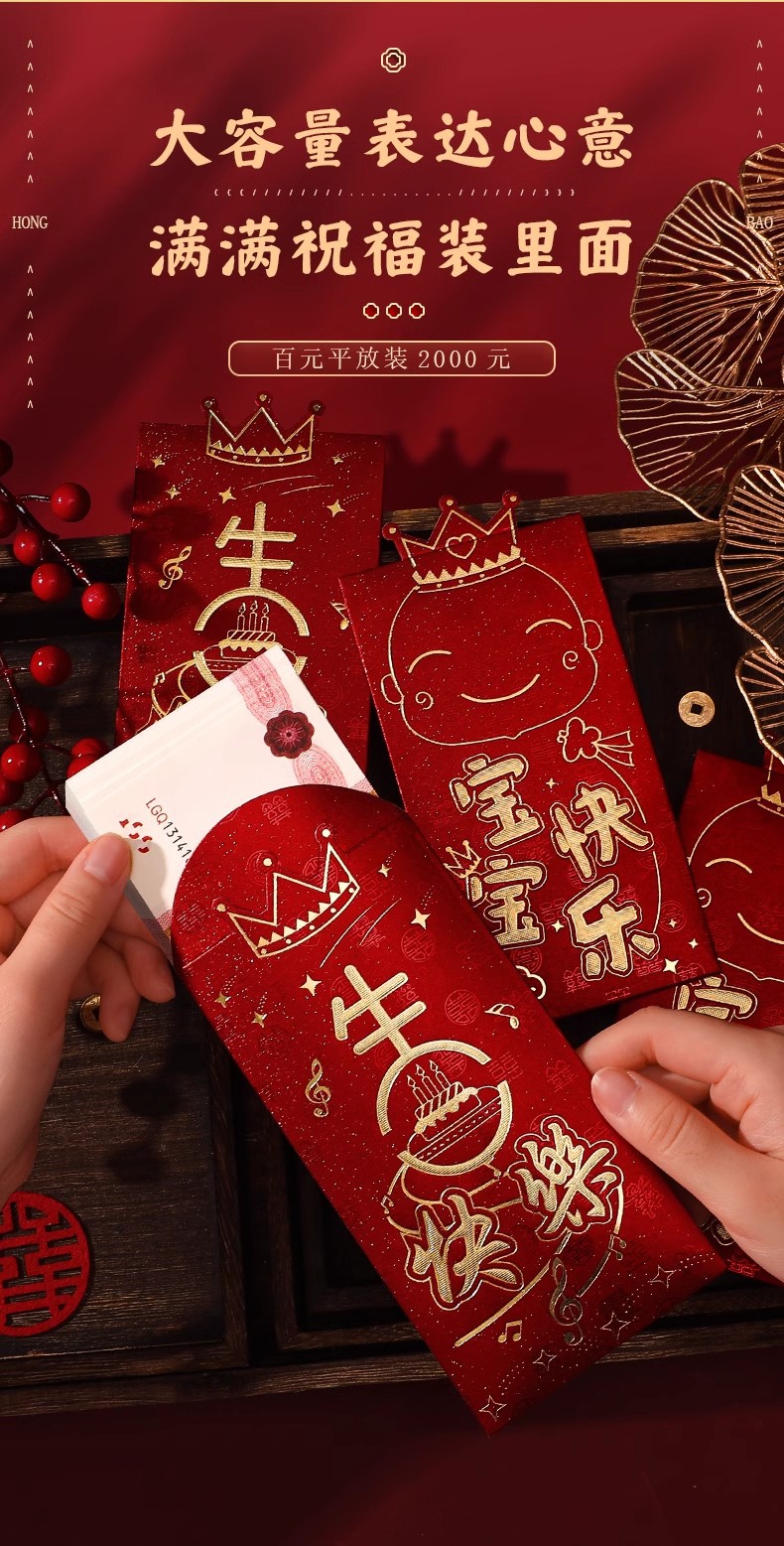 新款生日快乐红包宝宝出生满月红包个性创意过寿祝寿利是封红包袋