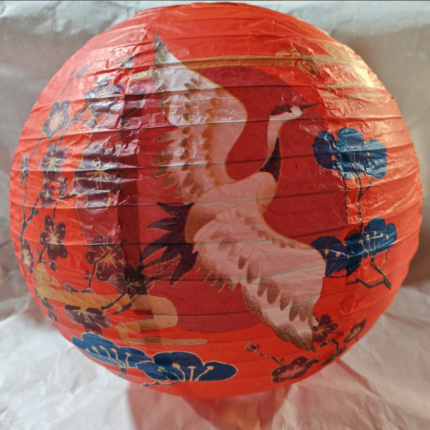 国风12寸纸灯笼圆形手工折叠喜庆装饰灯笼商场国风饭店装饰灯笼