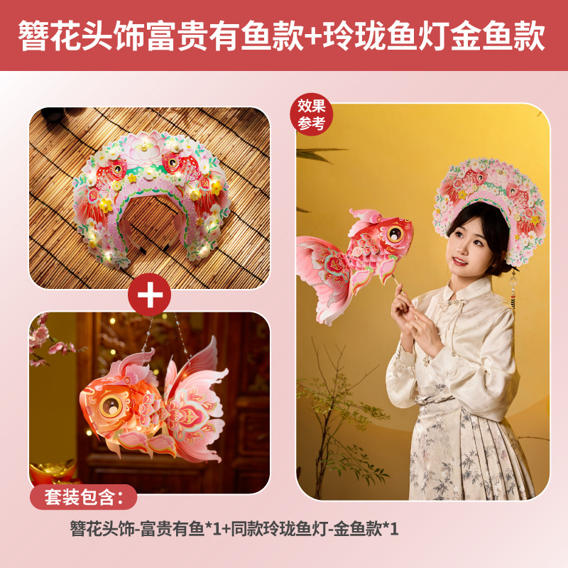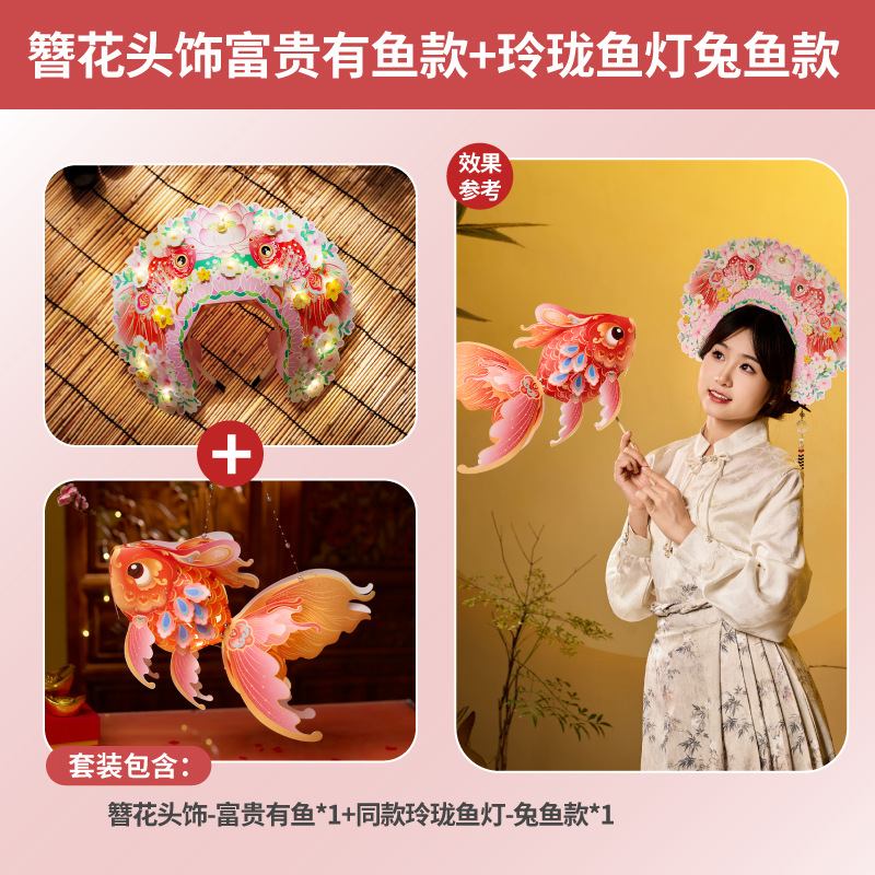 马年新春国潮玲珑鱼灯 手工diy儿童动手制作材料手提发光灯笼
