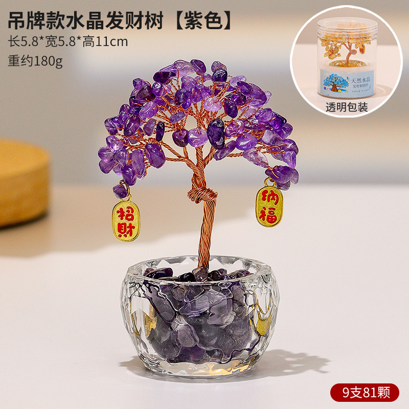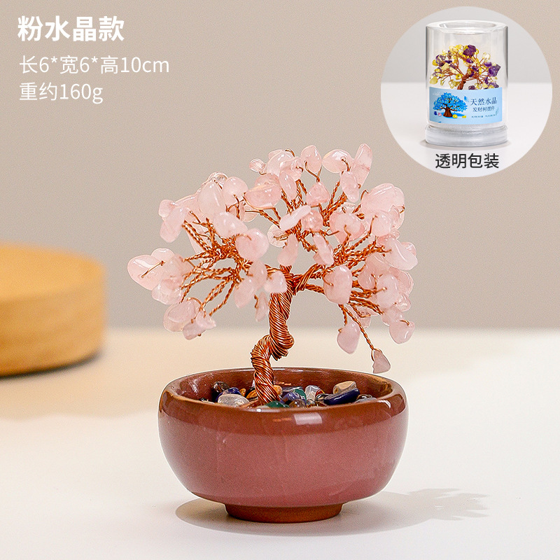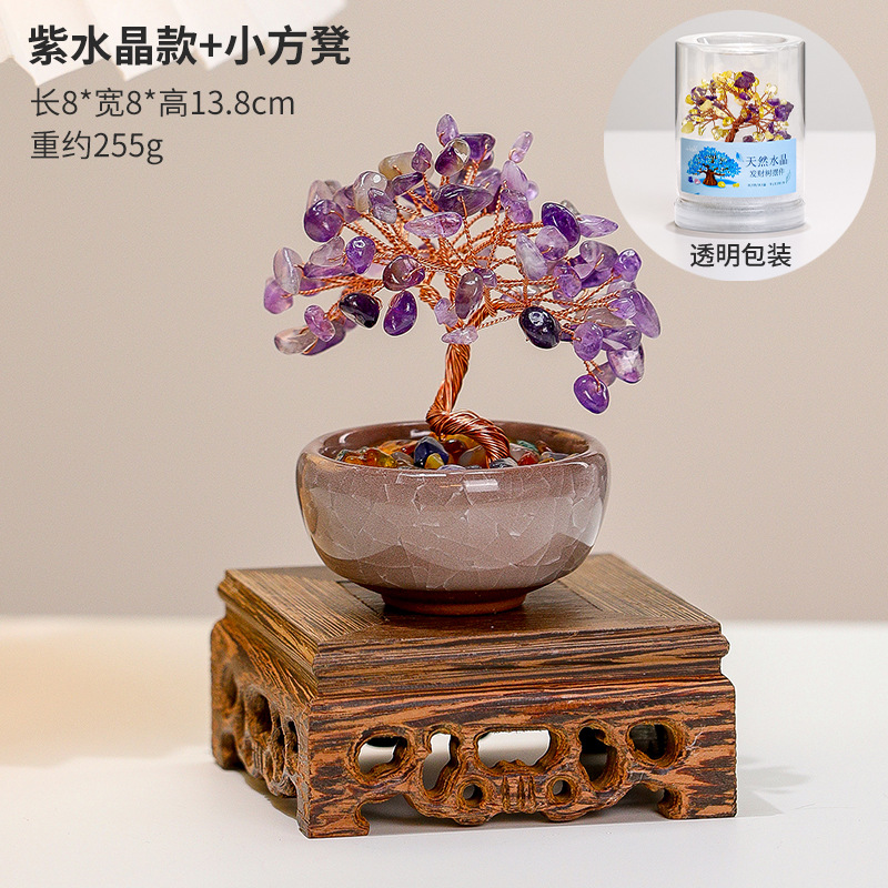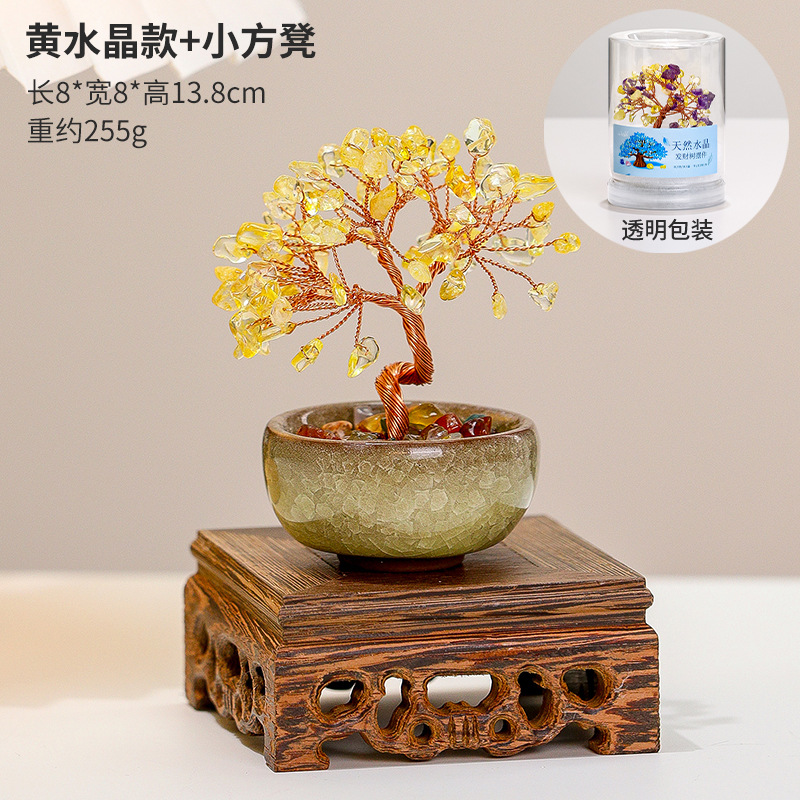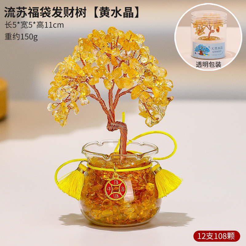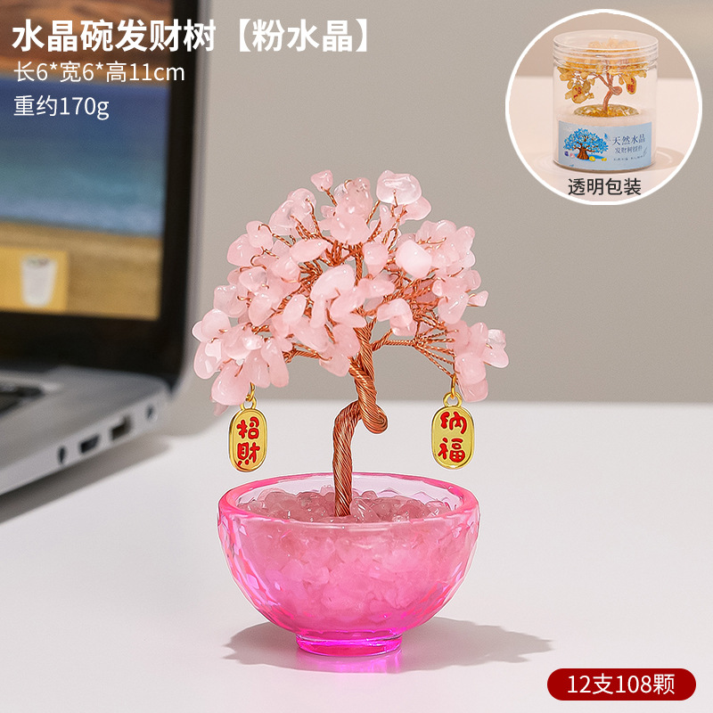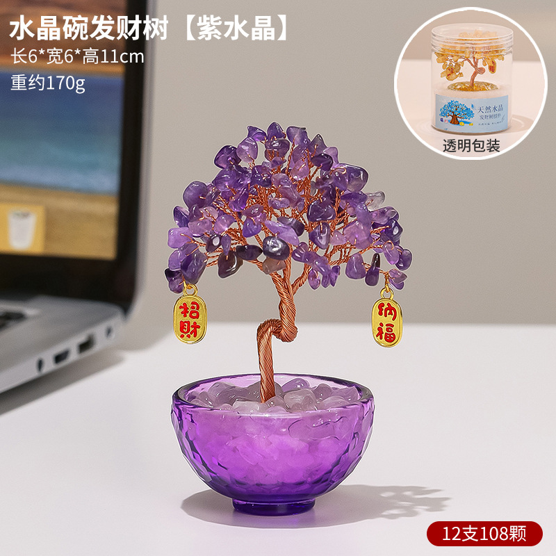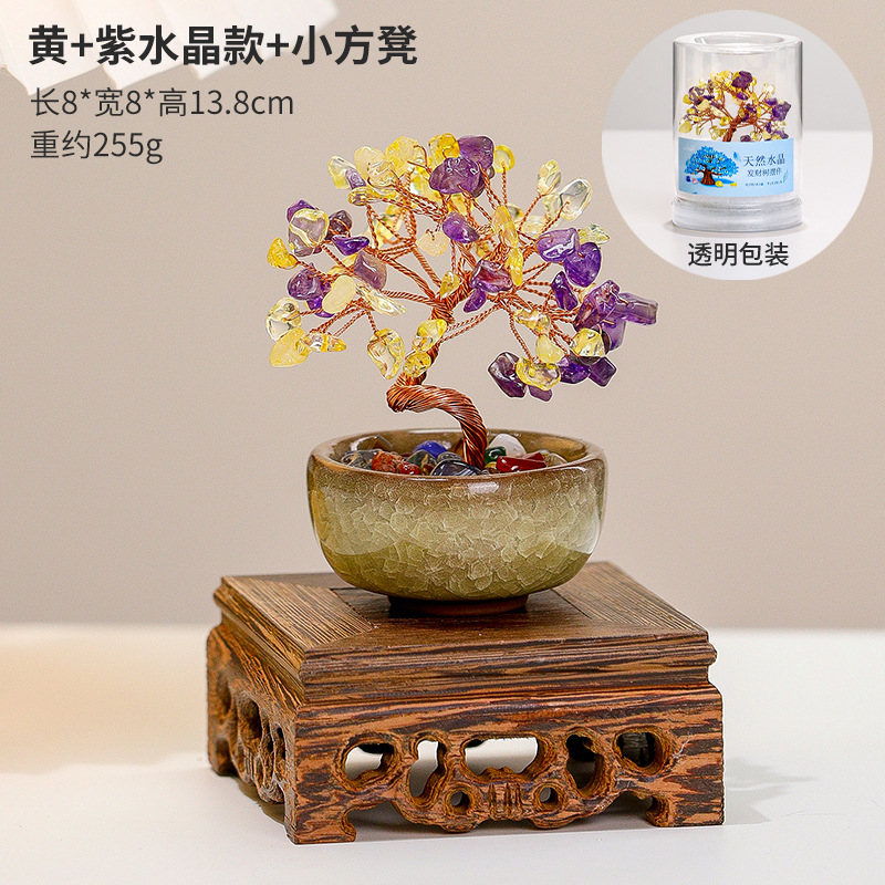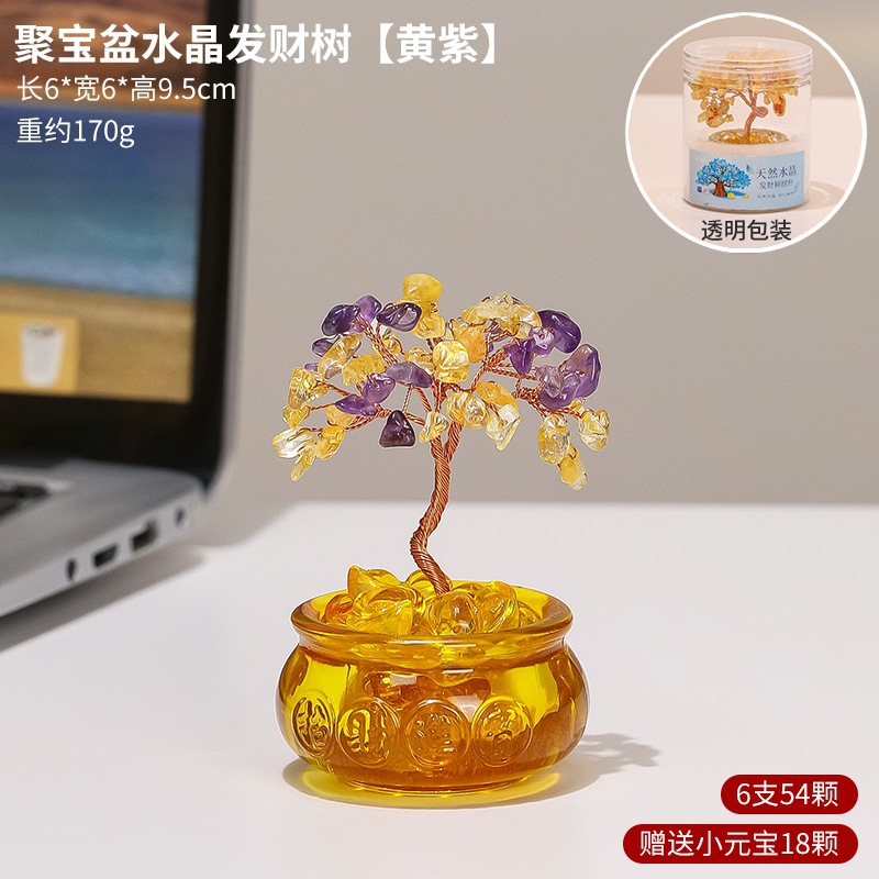 新中式聚宝盆水晶树水晶树摆件水晶生命树客厅玄关装饰品
