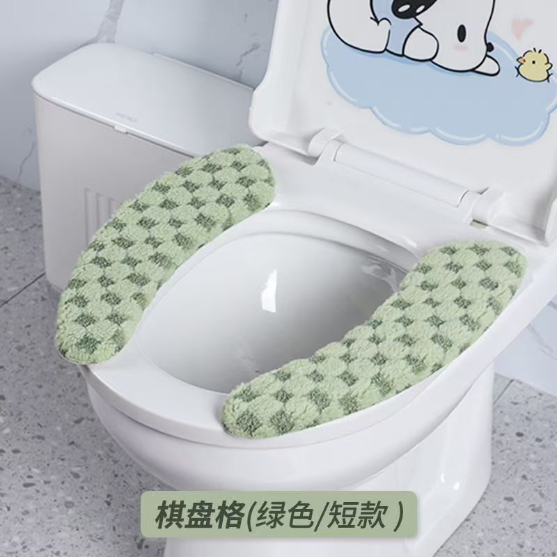 马桶垫粘贴式家用秋冬季防水坐垫贴轻奢洗款加厚毛绒条纹坐便垫子