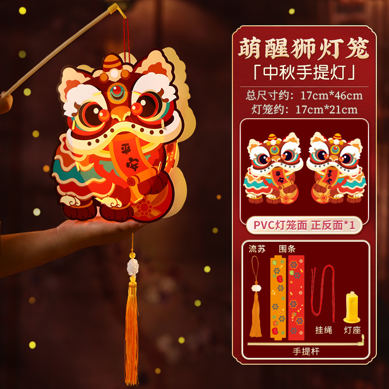 中秋节灯笼2025新款儿童手提PVC发光花灯兔子手工diy材料节日装饰
