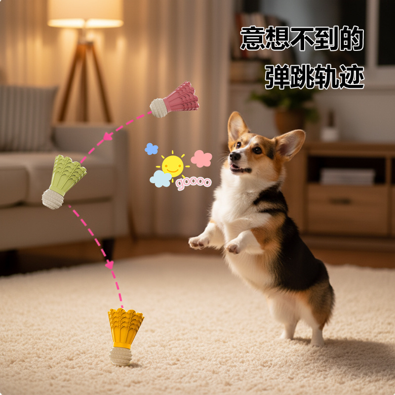 狗狗玩具漏食狗磨牙棒耐咬胶玩具羽毛球训练自嗨解闷跨境宠物用品