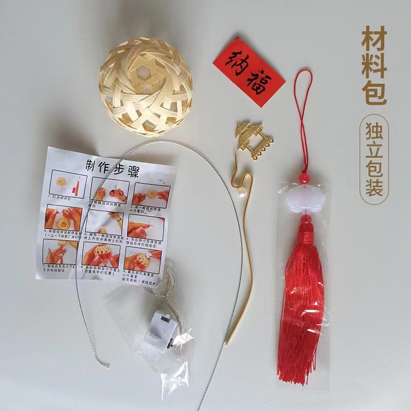 中秋灯笼手提发光花灯竹编发光小灯笼竹编材料制作竹编小灯笼花灯