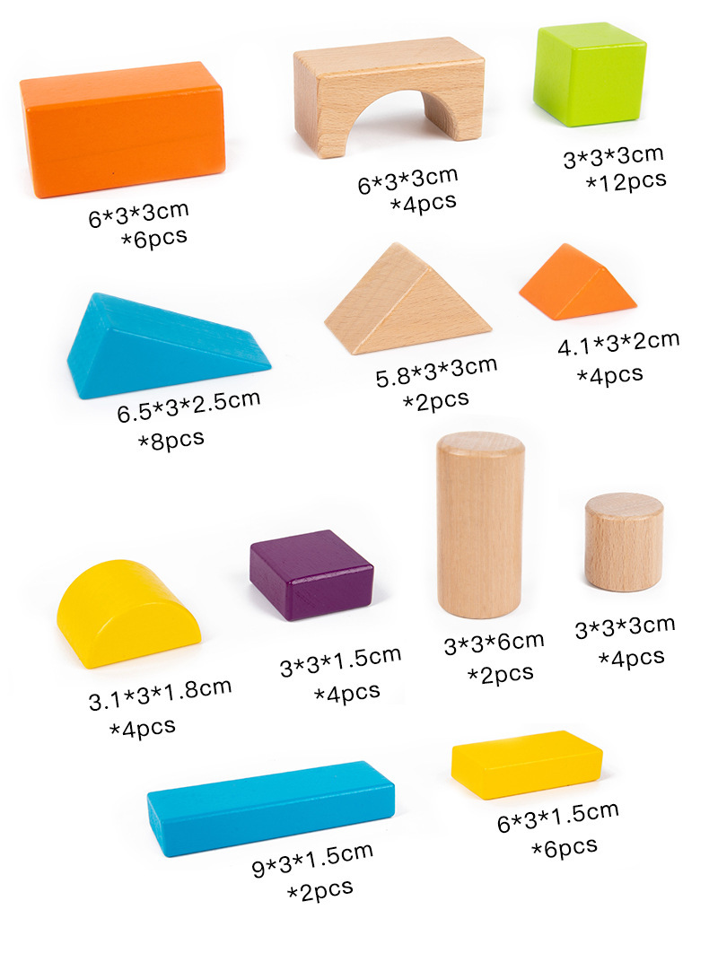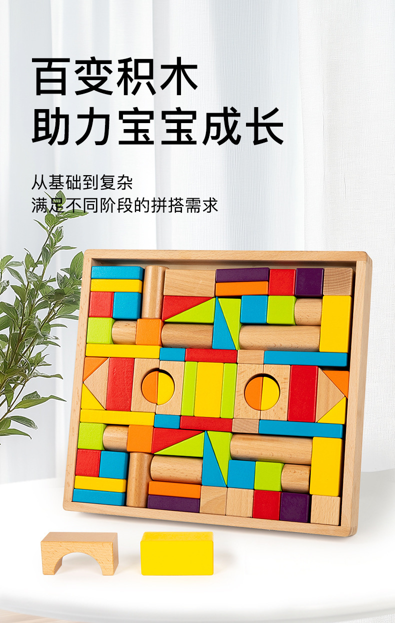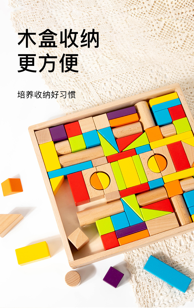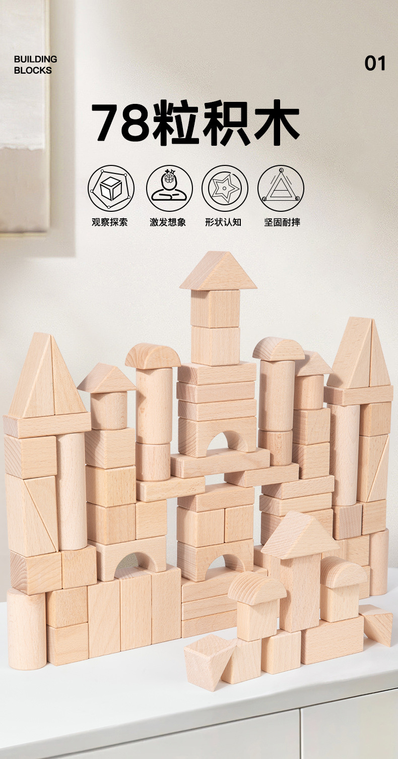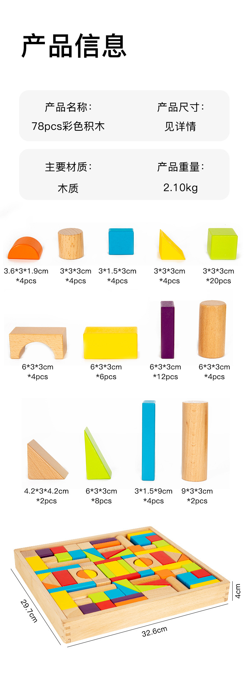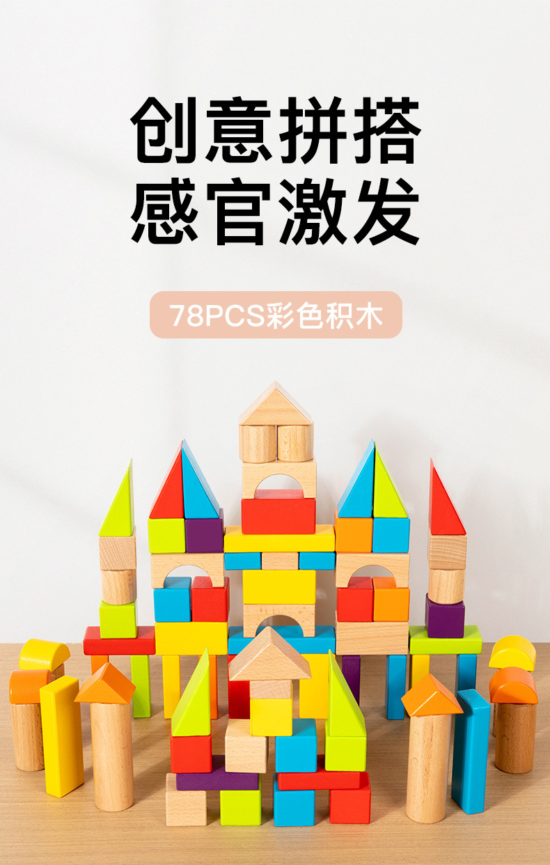 跨境儿童78粒彩色榉木积木形状几何认知创意堆叠拼搭城堡益智玩具