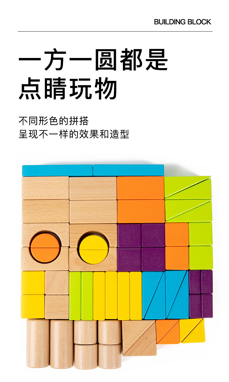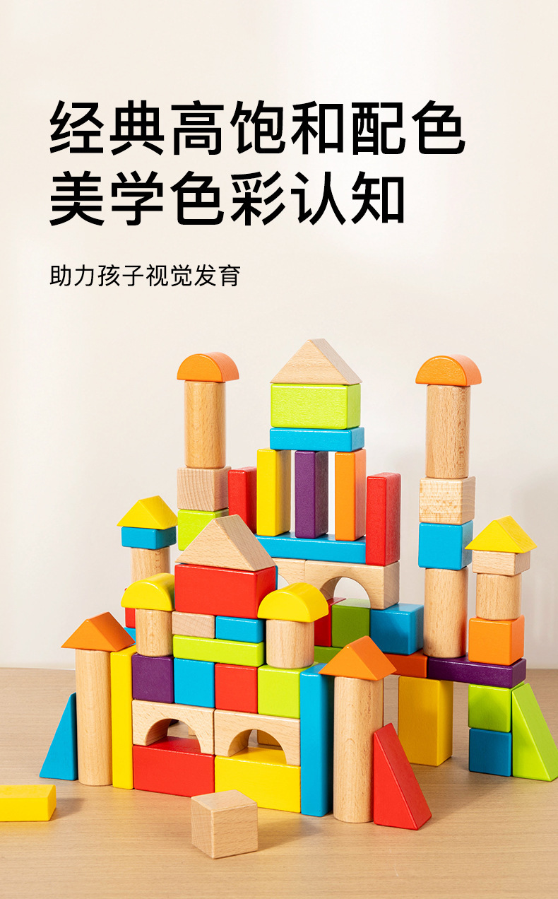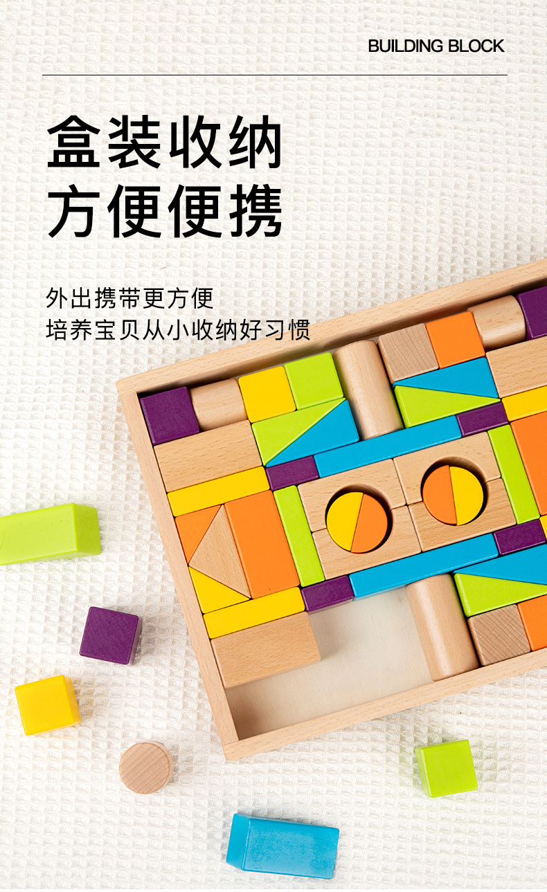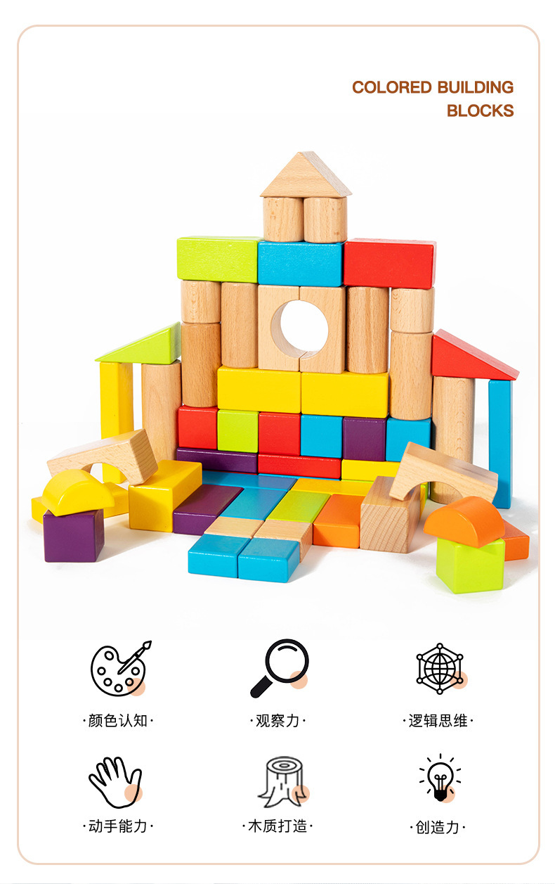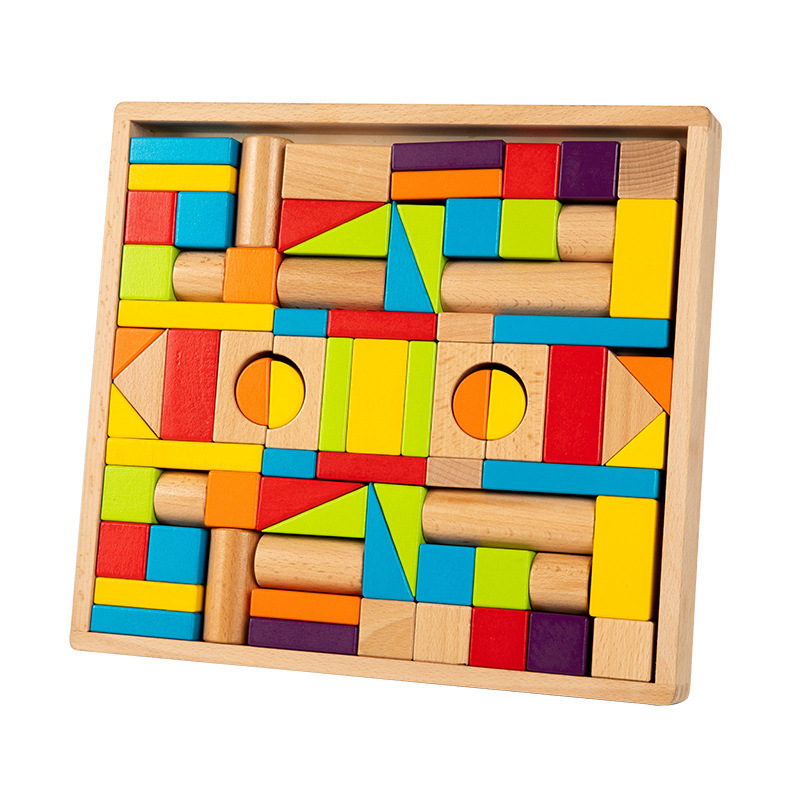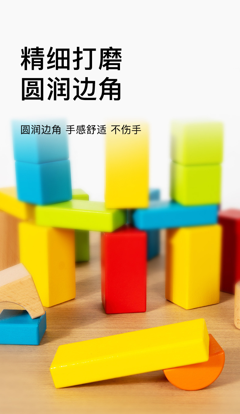 跨境儿童78粒彩色榉木积木形状几何认知创意堆叠拼搭城堡益智玩具
