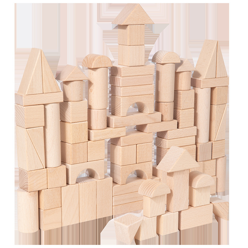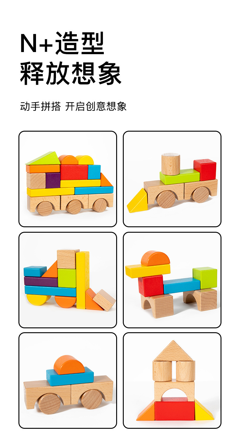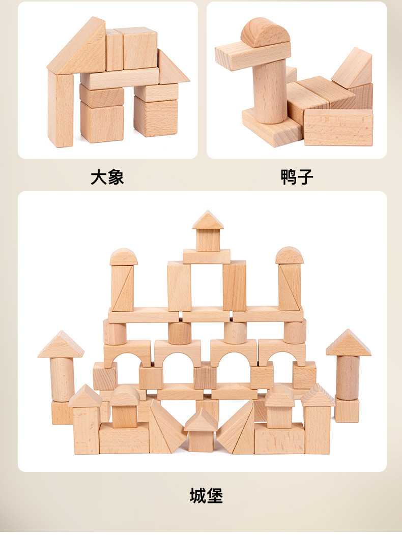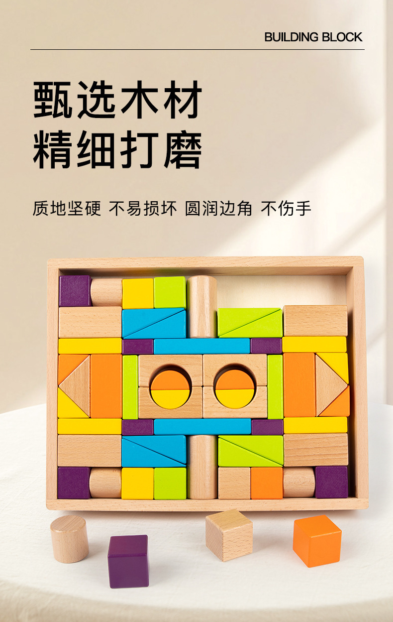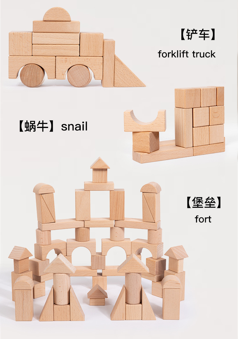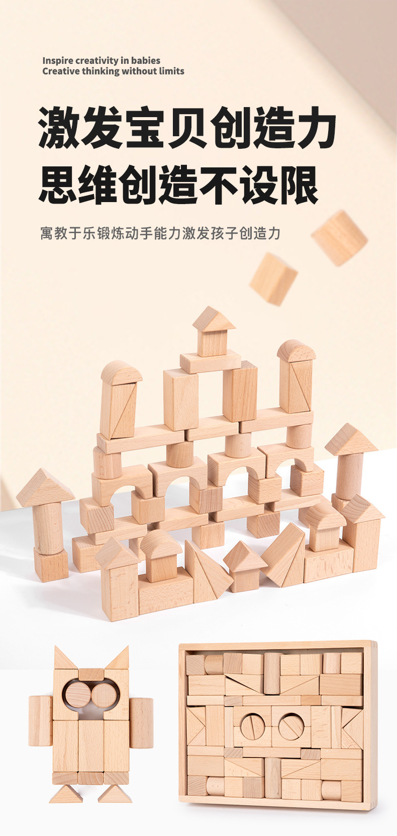 跨境儿童78粒彩色榉木积木形状几何认知创意堆叠拼搭城堡益智玩具