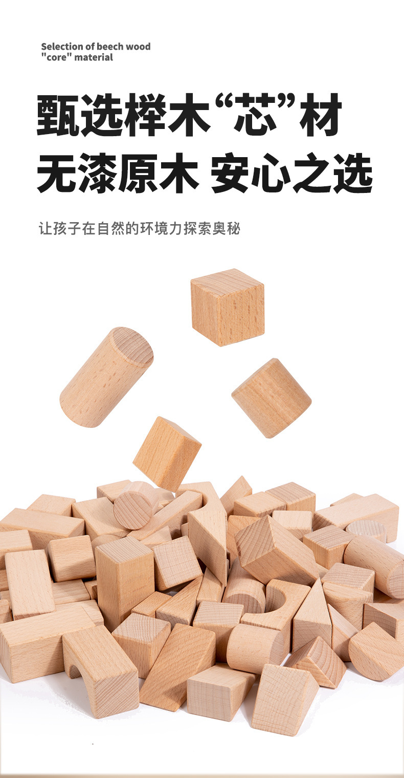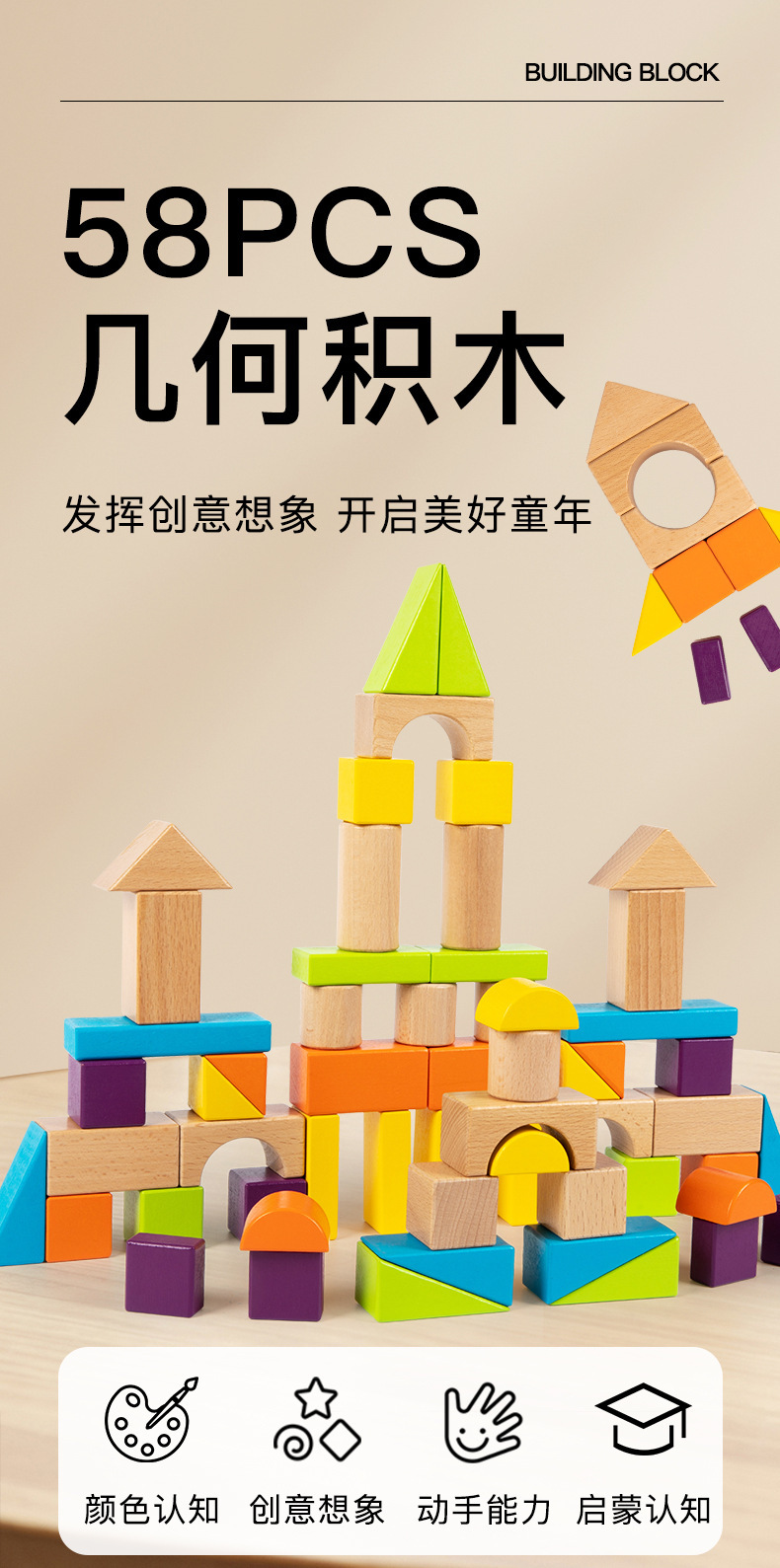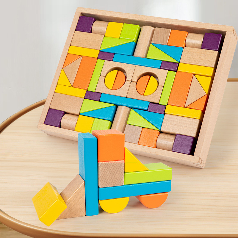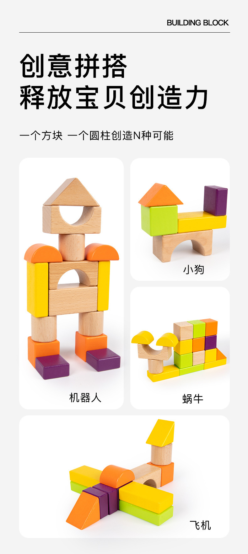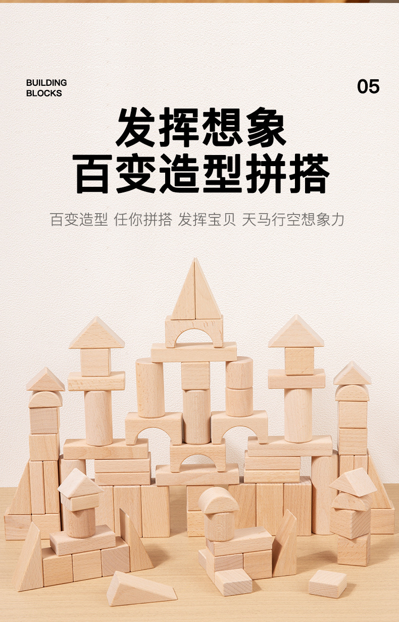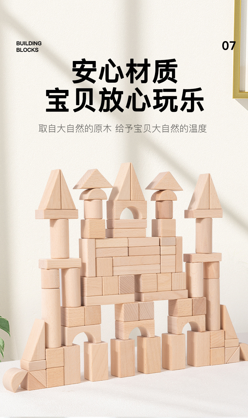 跨境儿童78粒彩色榉木积木形状几何认知创意堆叠拼搭城堡益智玩具