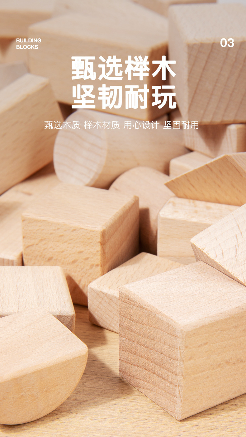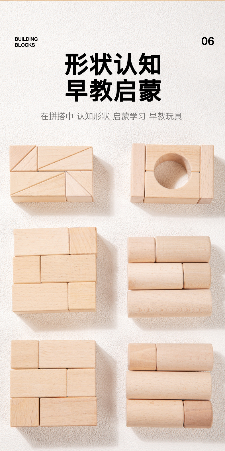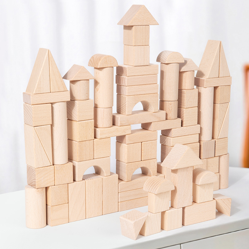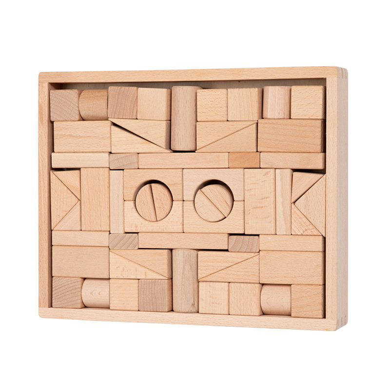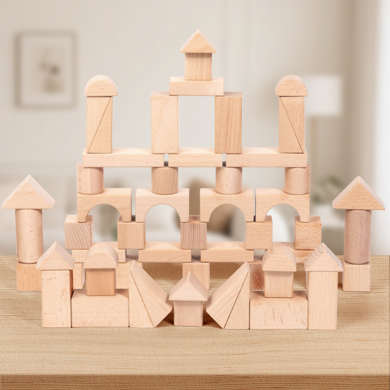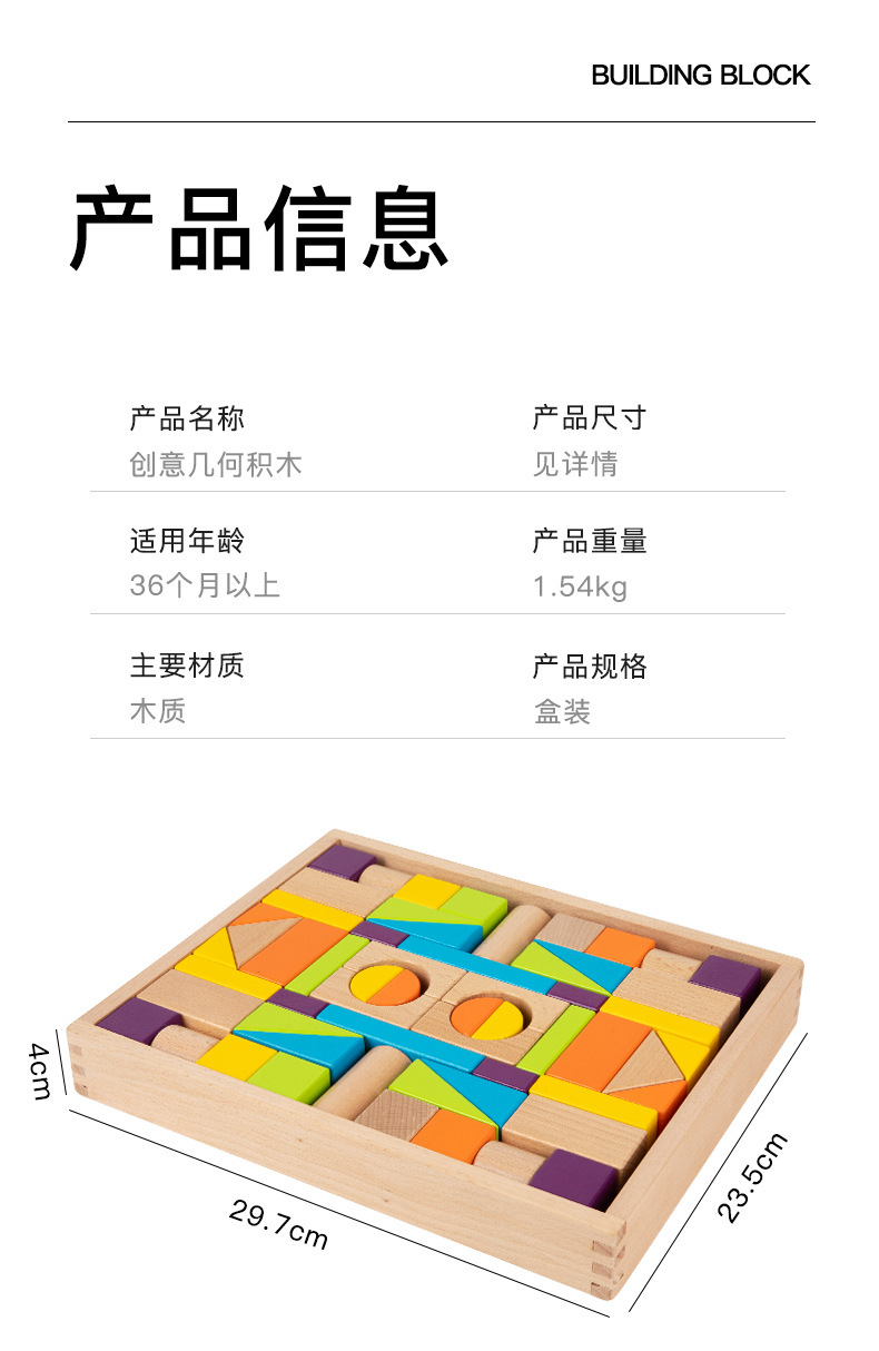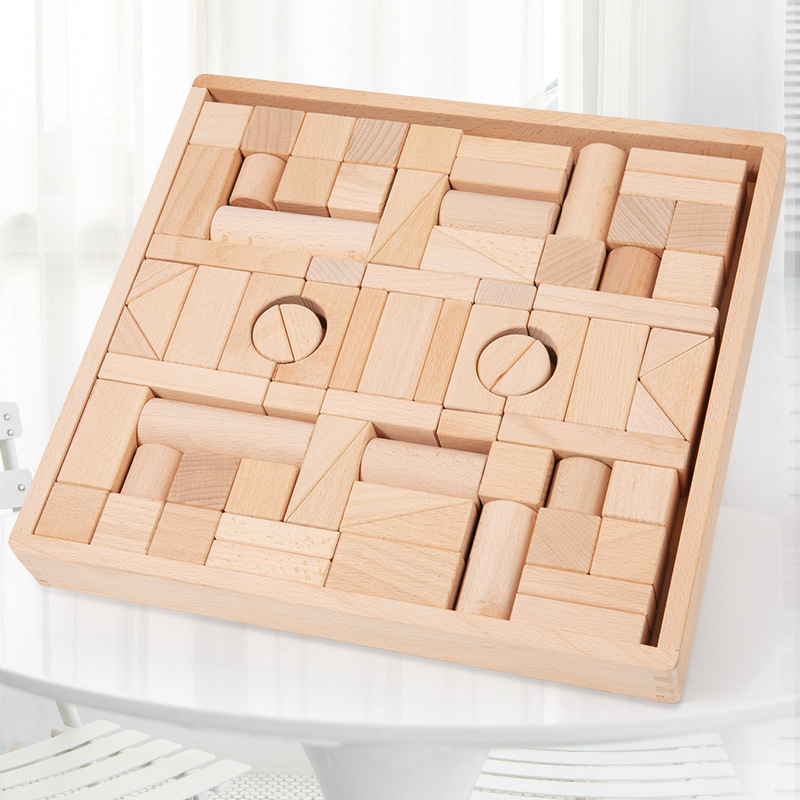 跨境儿童78粒彩色榉木积木形状几何认知创意堆叠拼搭城堡益智玩具