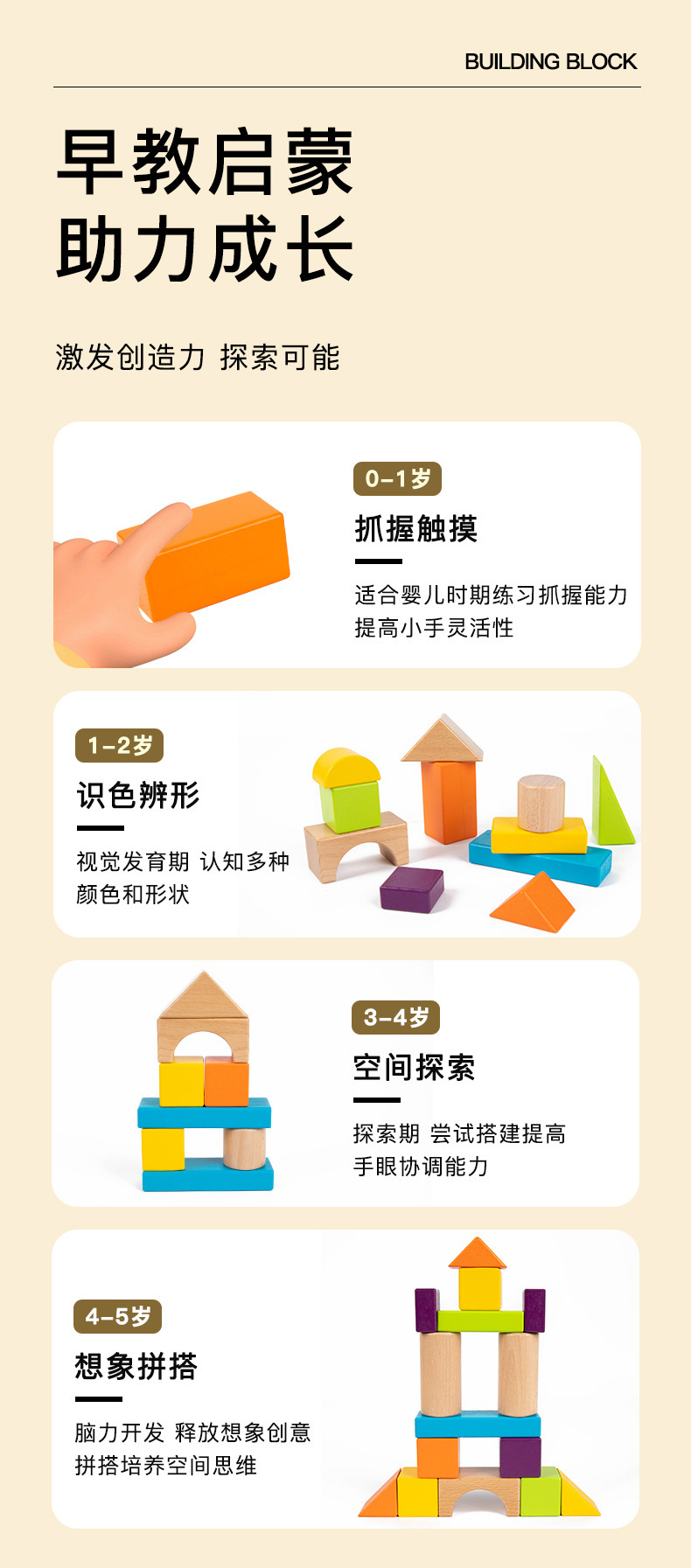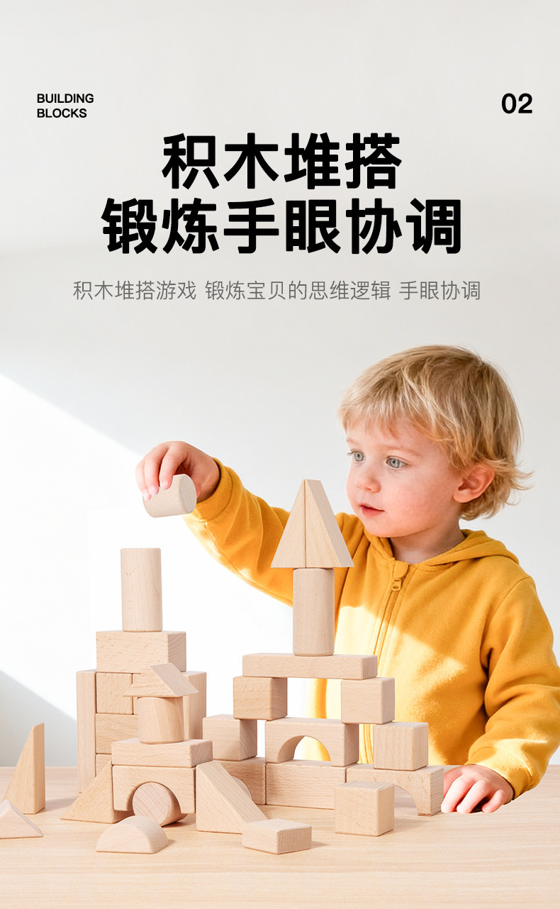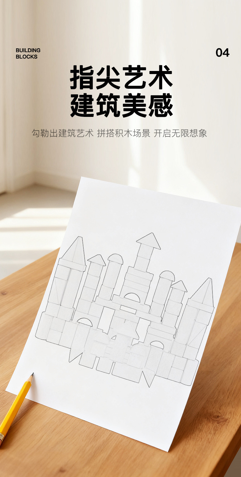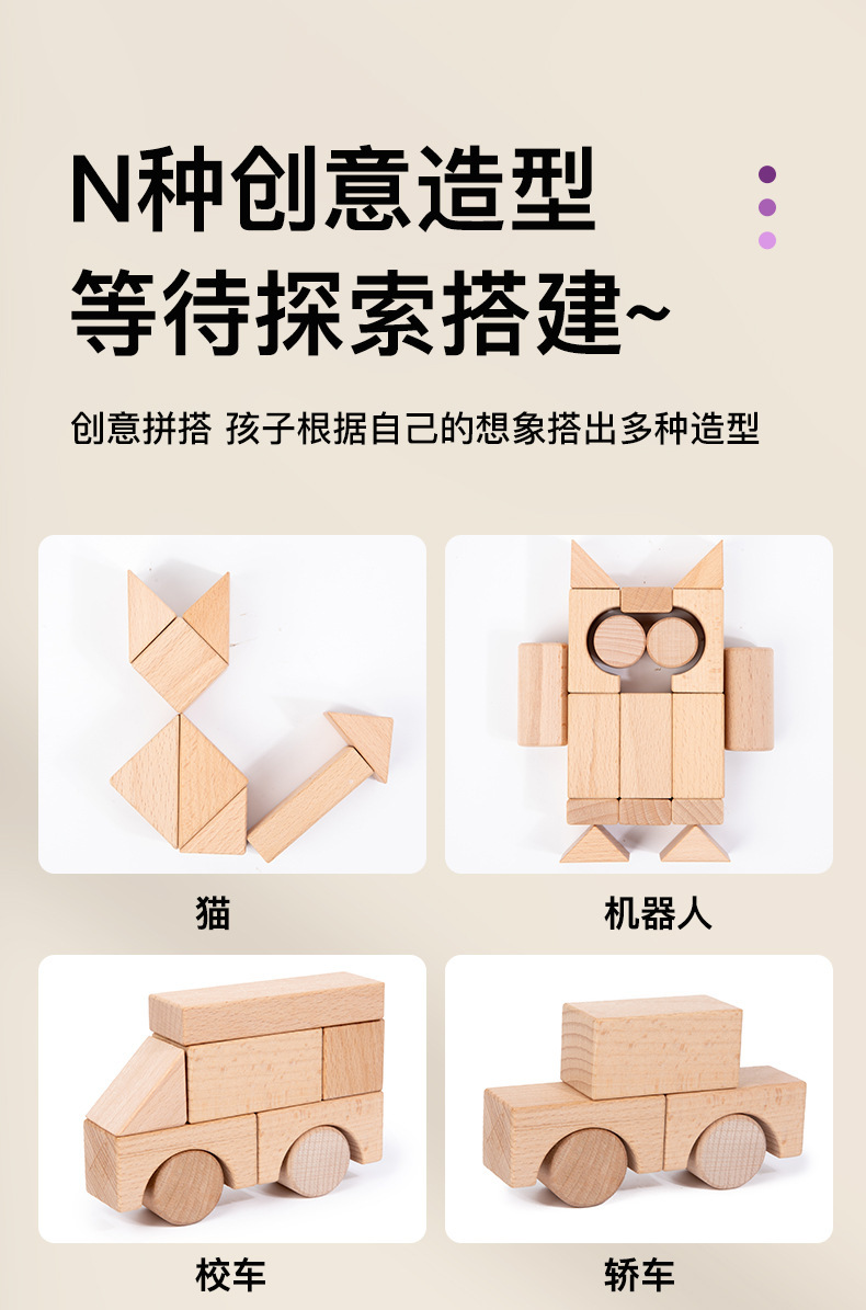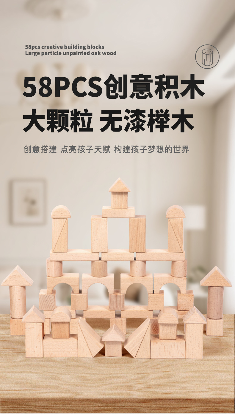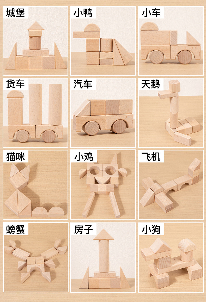 跨境儿童78粒彩色榉木积木形状几何认知创意堆叠拼搭城堡益智玩具