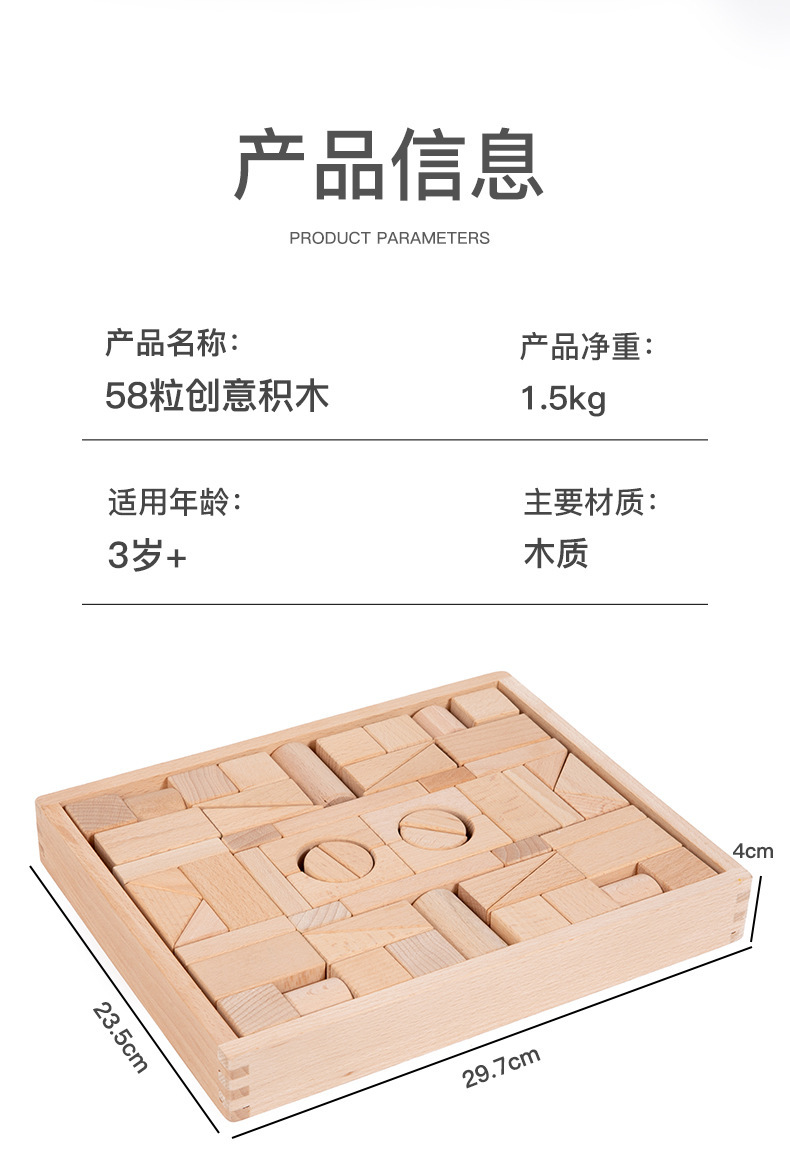 【产品名称】:58粒榉木木盒原色积木/58粒榉木木盒彩色积木