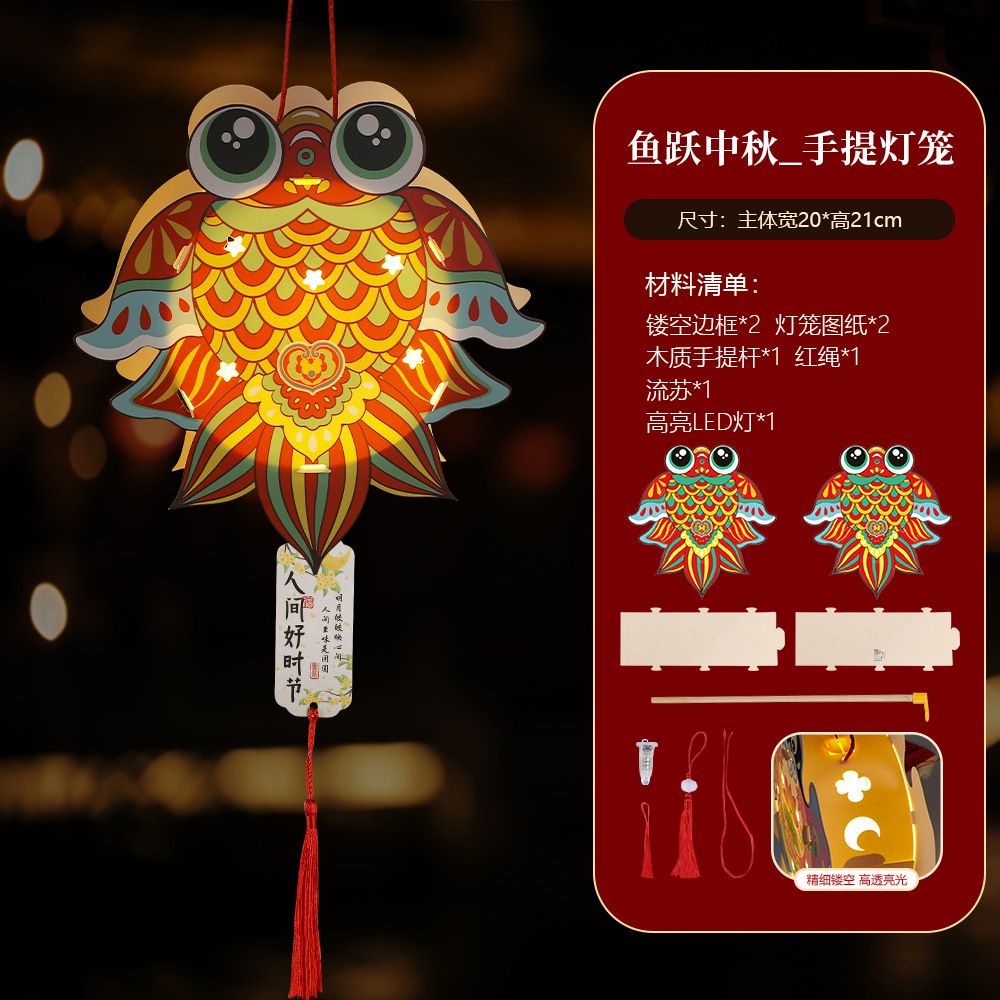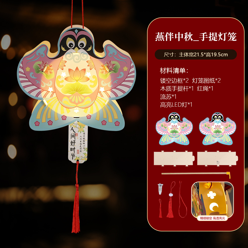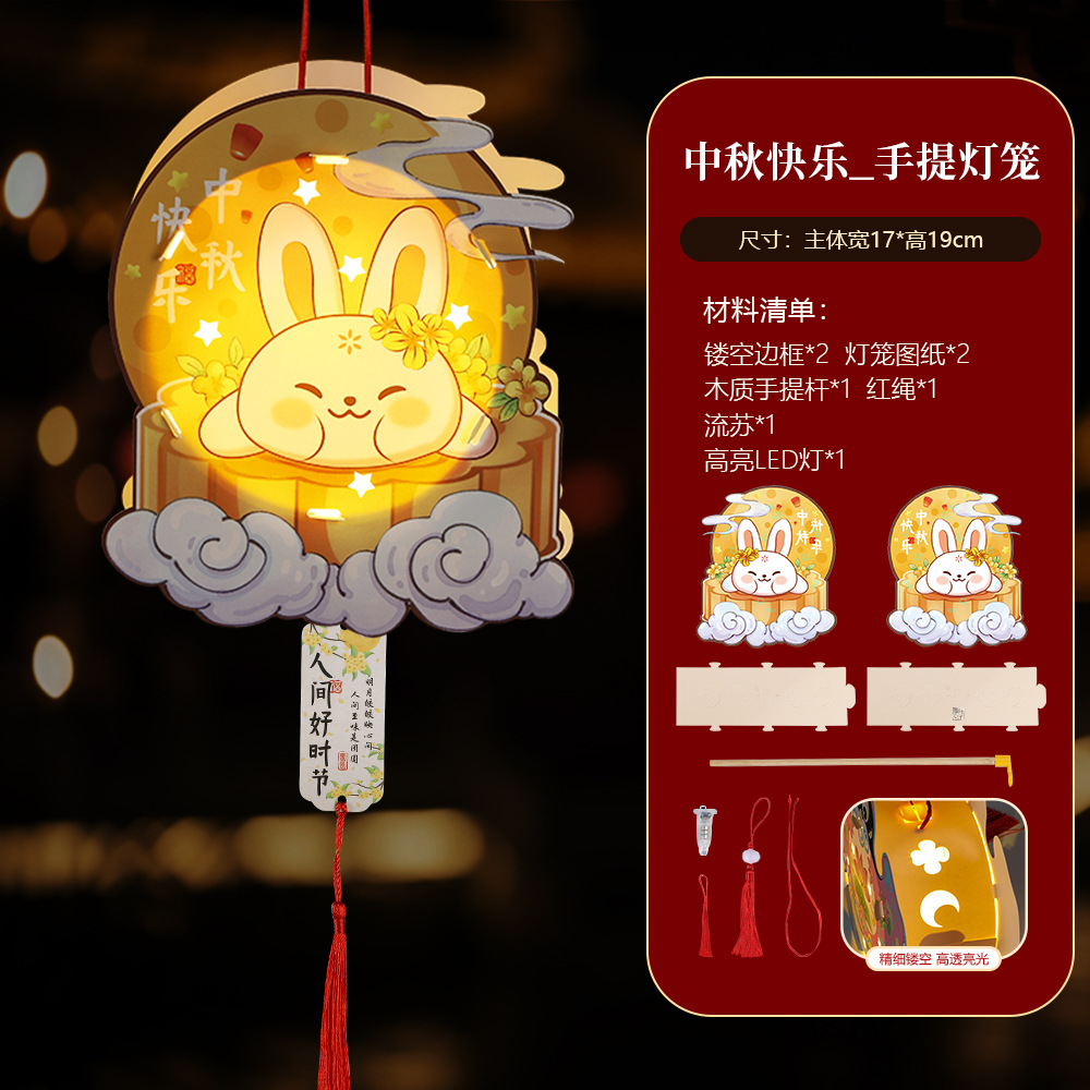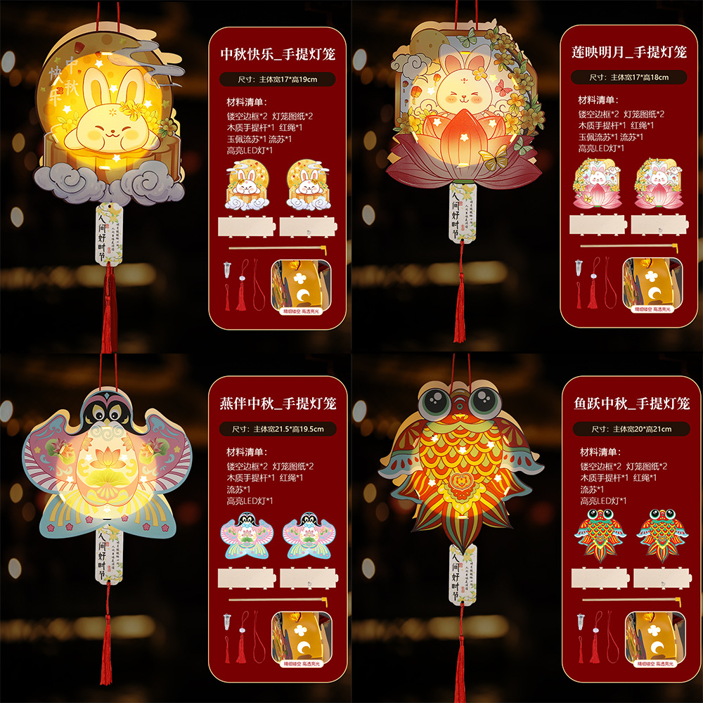 中秋节灯笼手工diy材料包手提古风花灯挂件儿童汉服宫灯摆摊发光