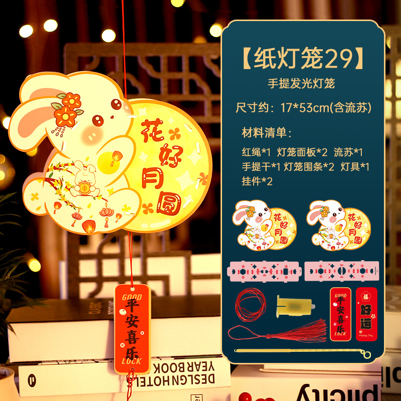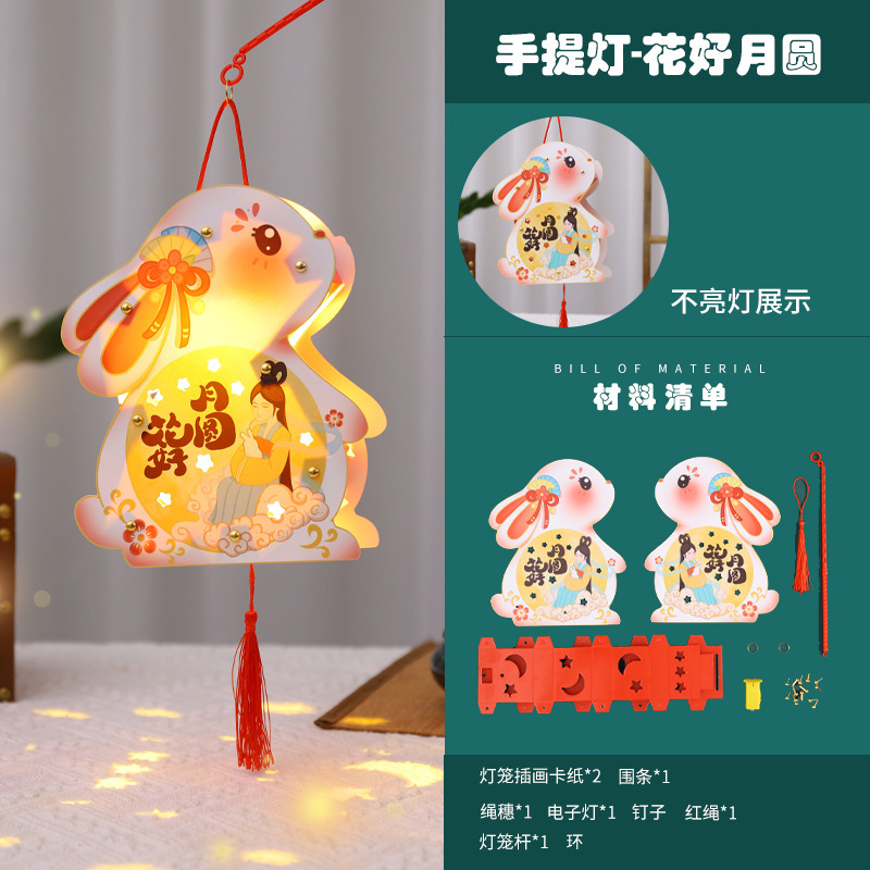 中秋节灯笼手提兔子发光灯笼儿童diy手工制作材料包古风花灯批发