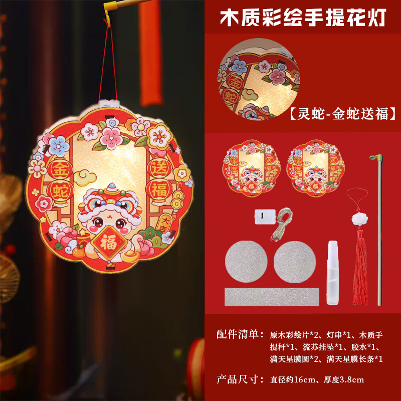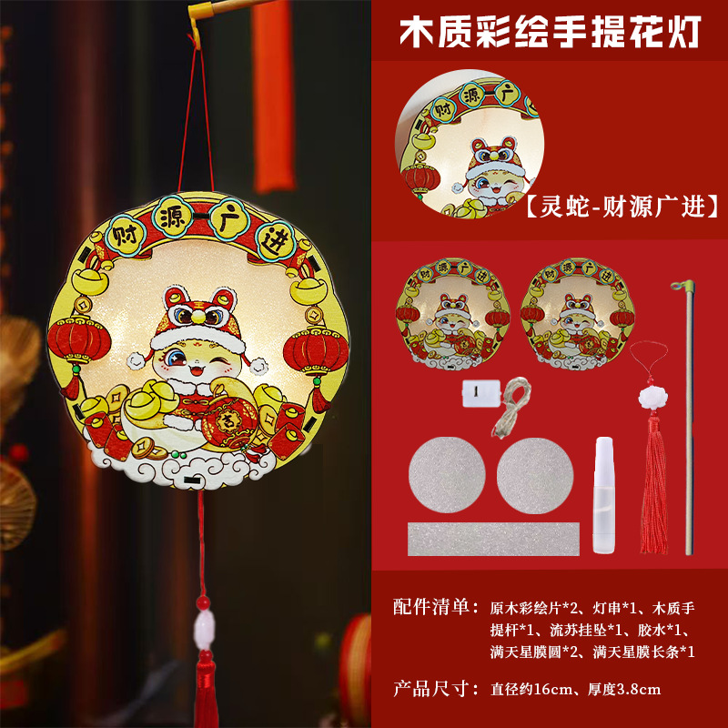 2025新年卡通春节蛇年木质灯笼diy材料包元宵节儿童手提花灯喜庆