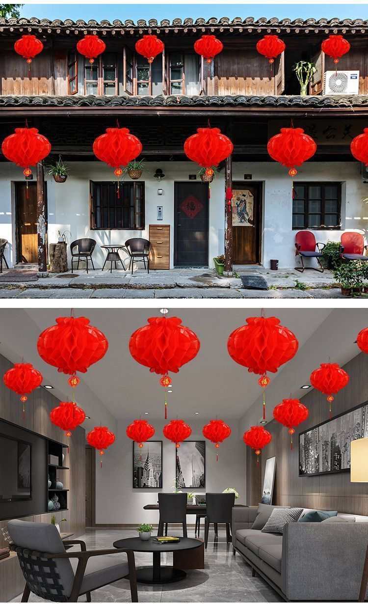 塑纸灯笼结婚新年春节喜庆元旦节日防雨防晒蜂窝折叠装饰小红灯笼