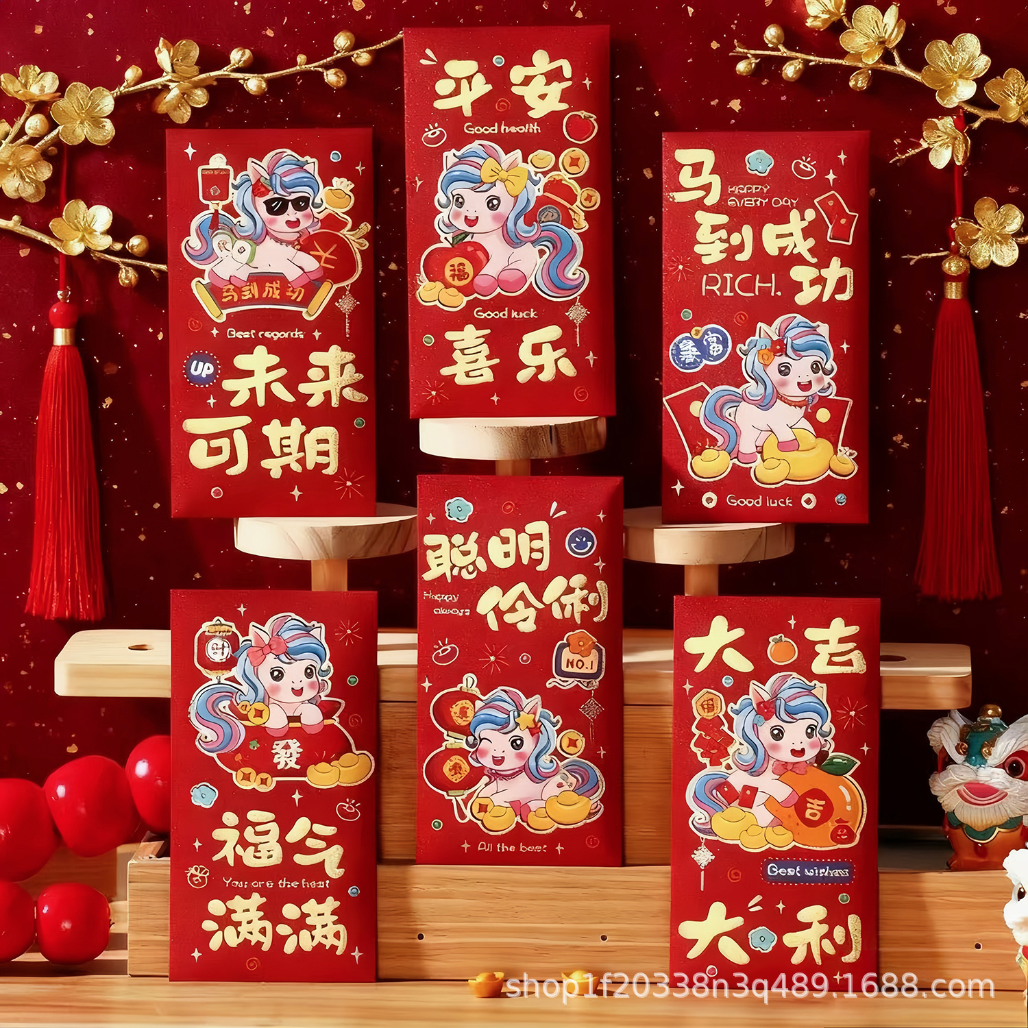 2026马年红包创意卡通金葱磨砂春节立体利是封新年压岁红包袋批发
