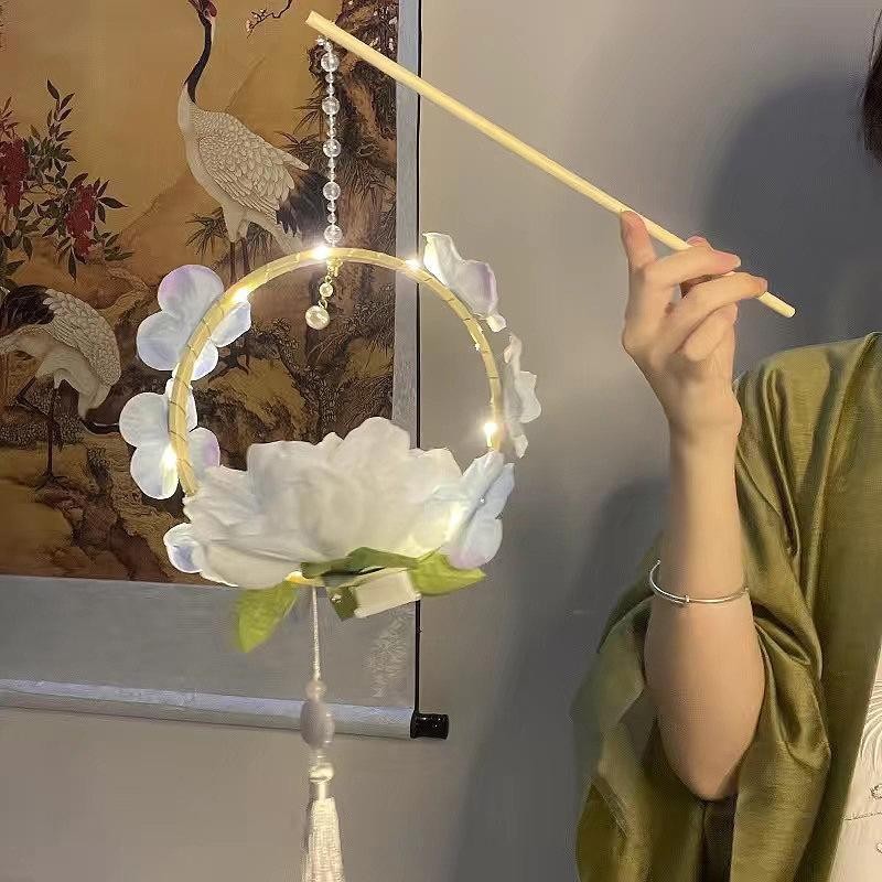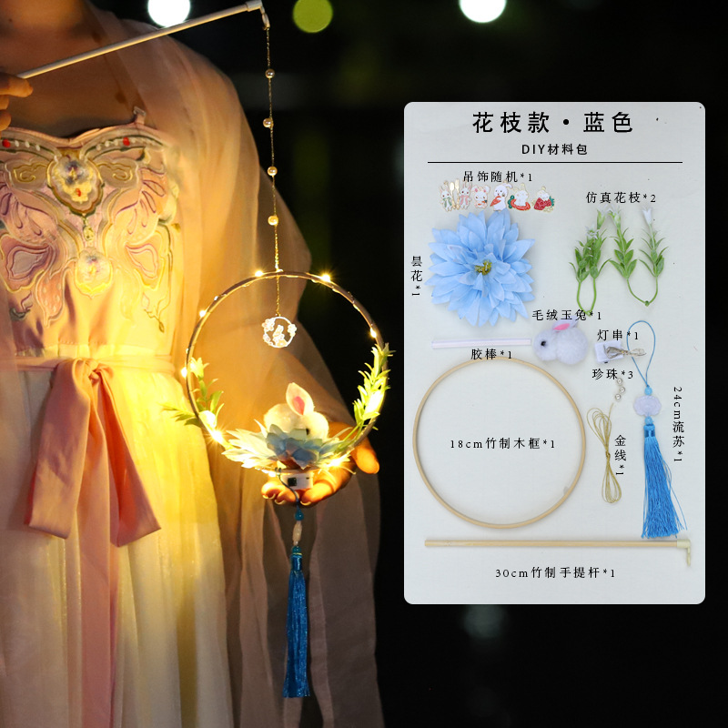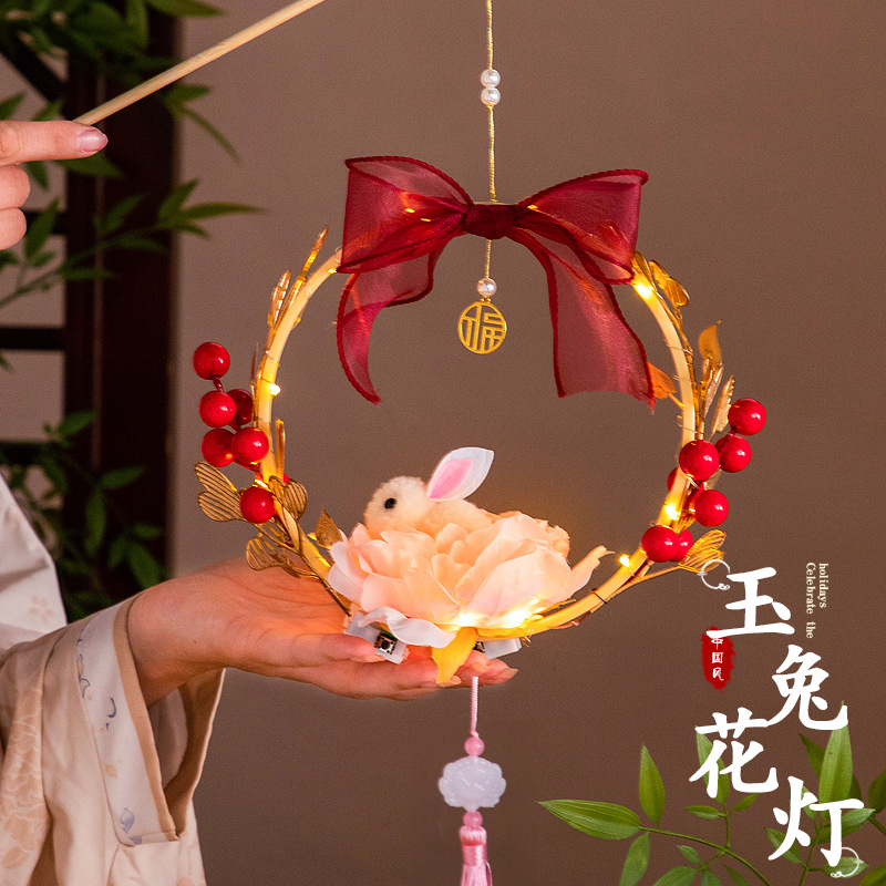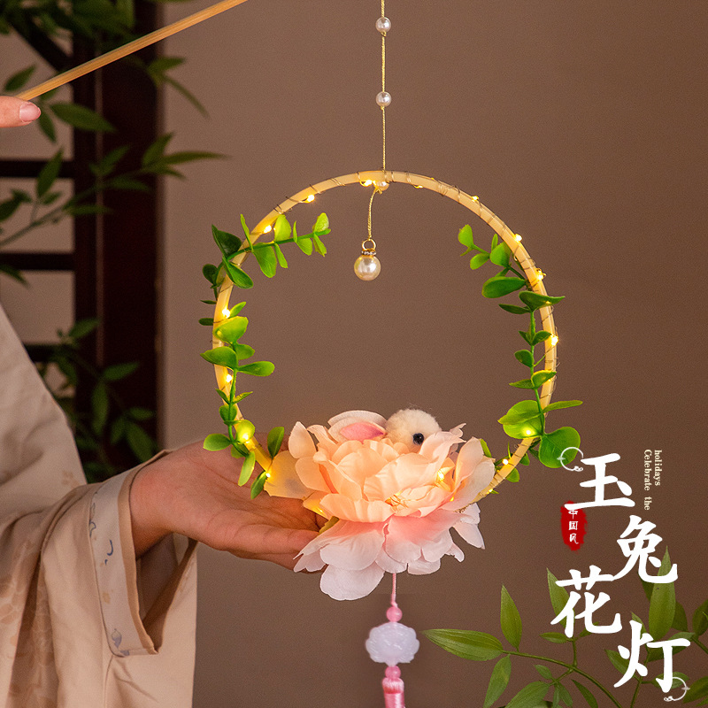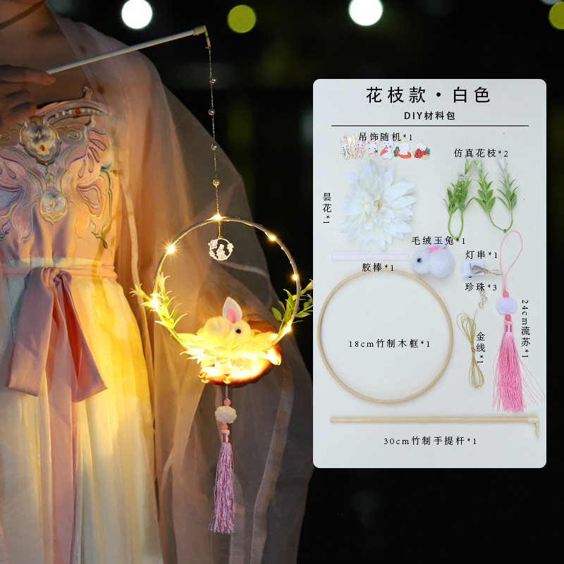中秋节兔子灯笼儿童手工diy材料包古风手提发光玉兔小花灯摆摊