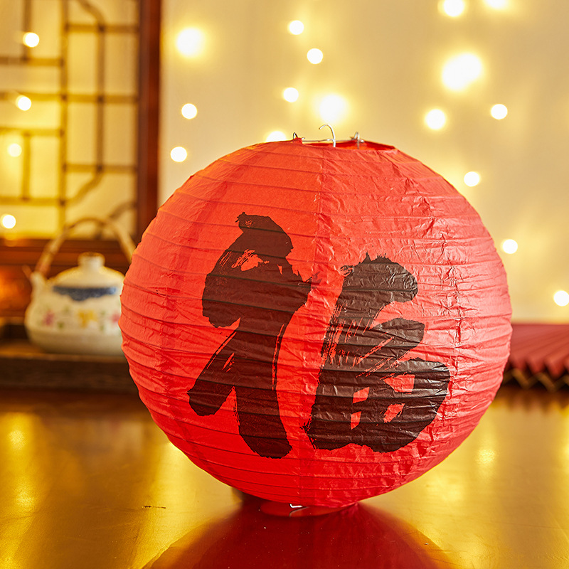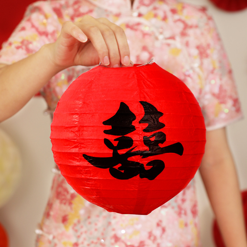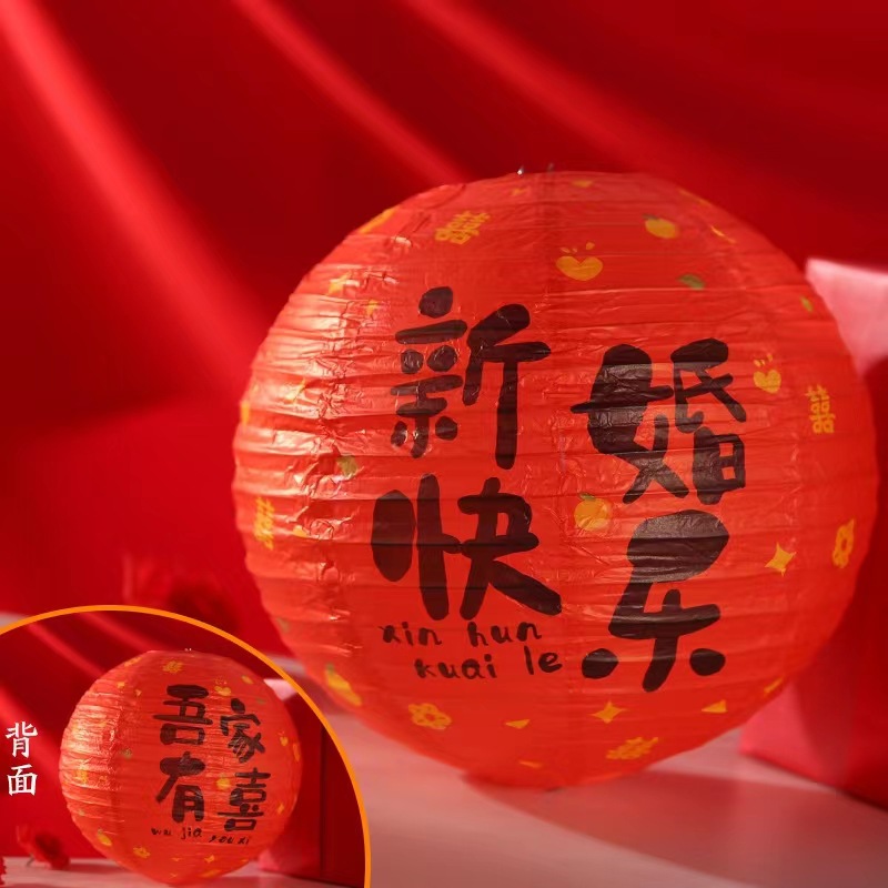 结婚庆彩色纸灯笼元宵春节中秋挂饰氛围彩绘纸灯笼折叠国风花灯笼