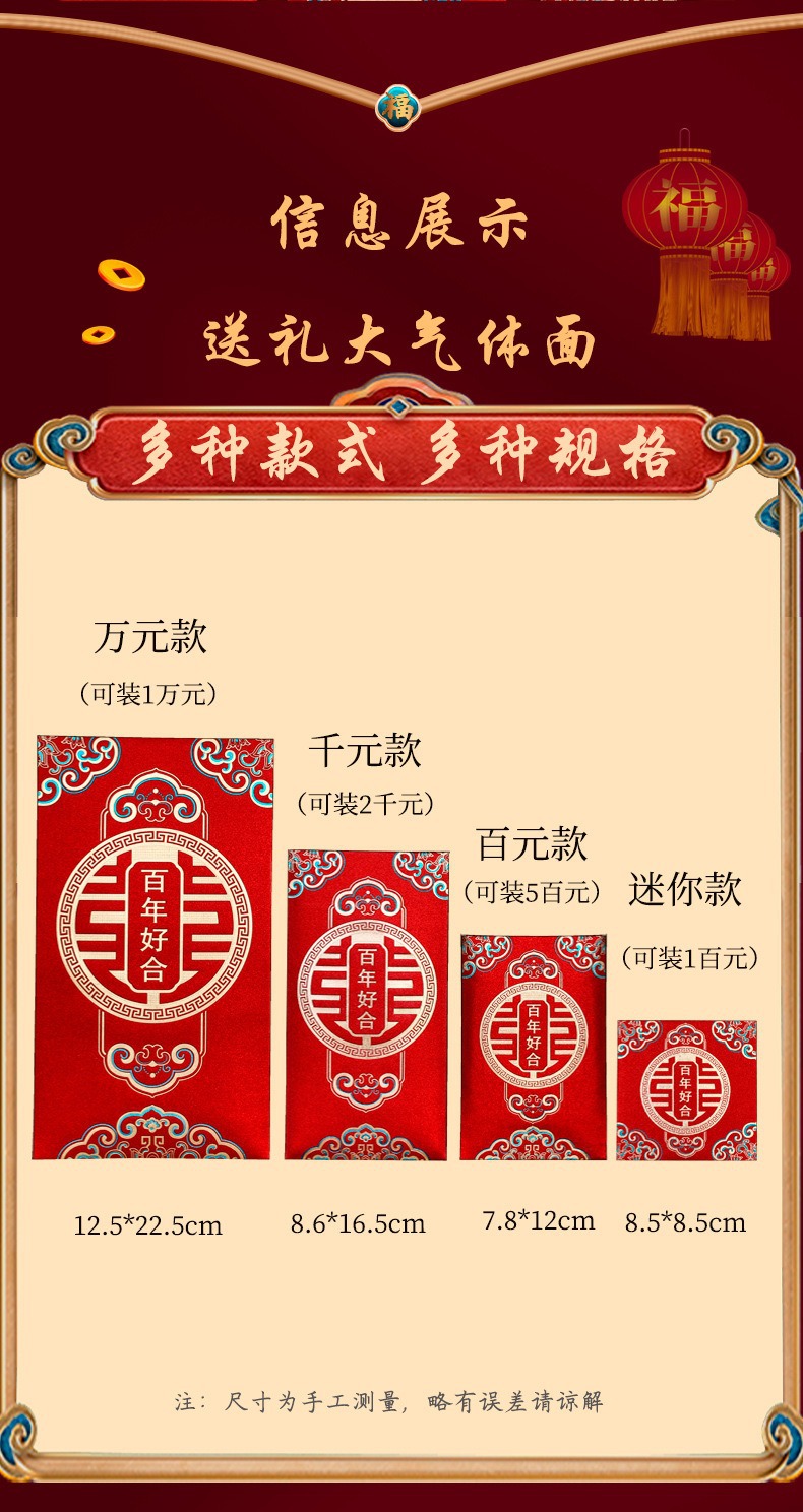 中式结婚红包婚庆婚礼改口小红包乔迁酒席利是封创意堵门红包批发