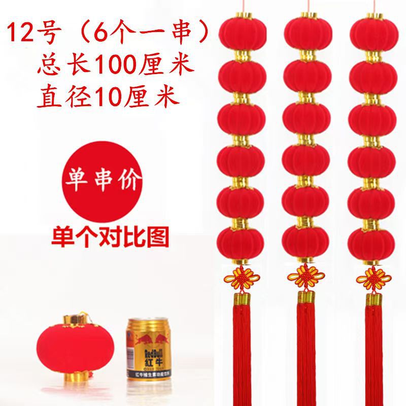 新款入户门小红植绒灯笼串新年春节装饰挂饰室内场景布置灯笼挂件