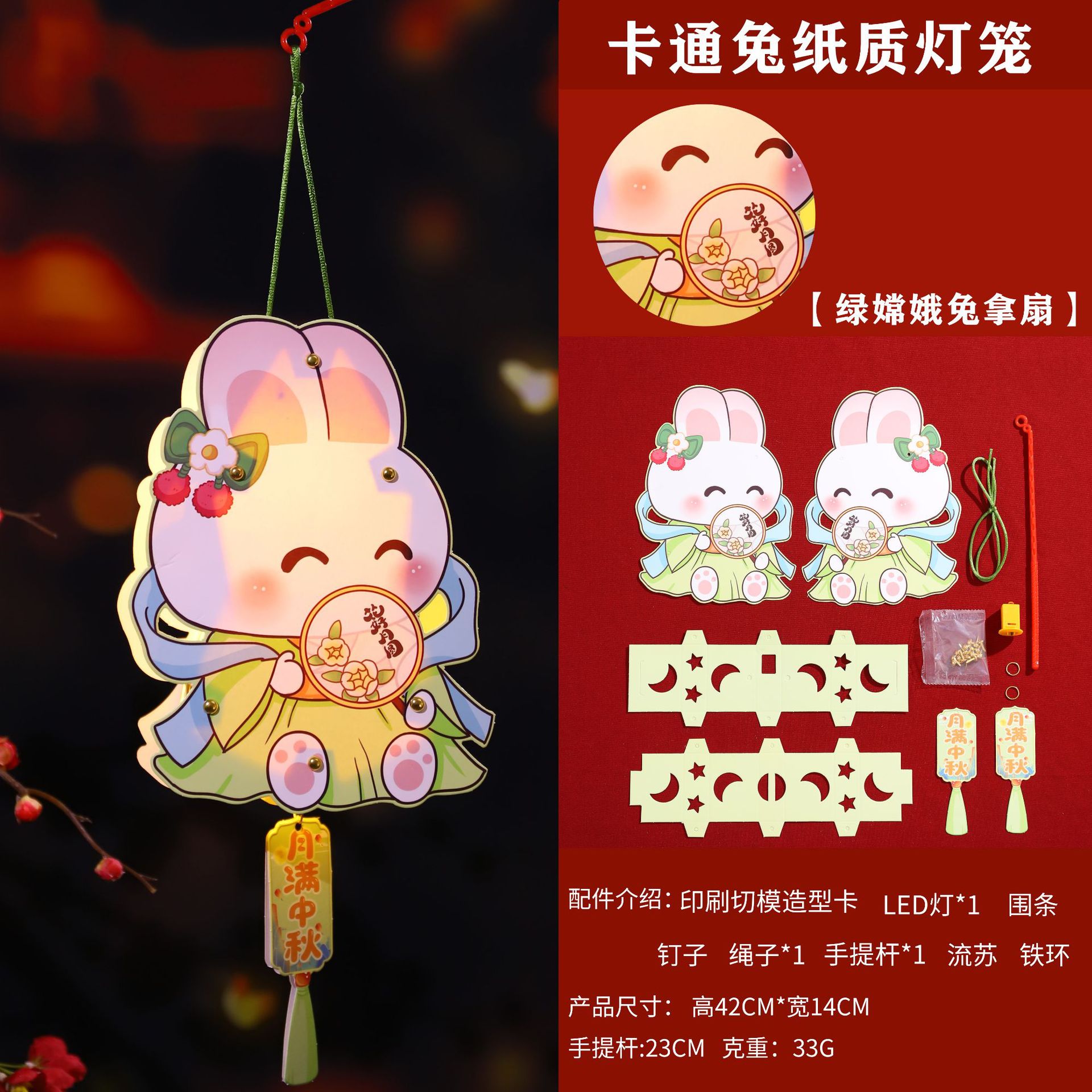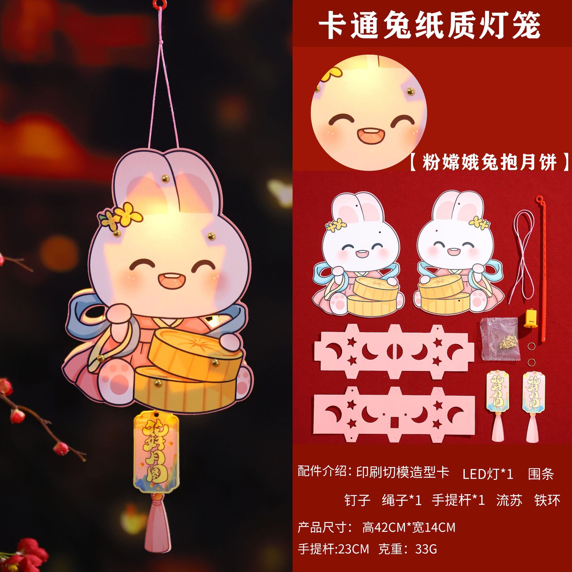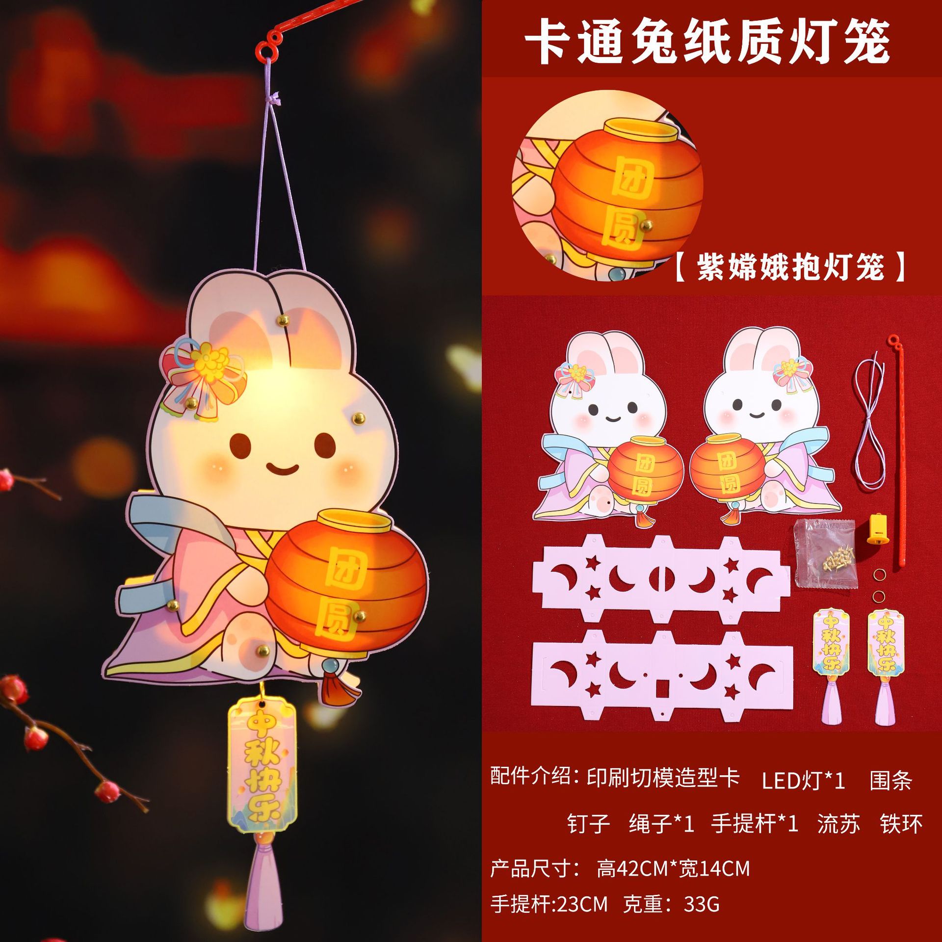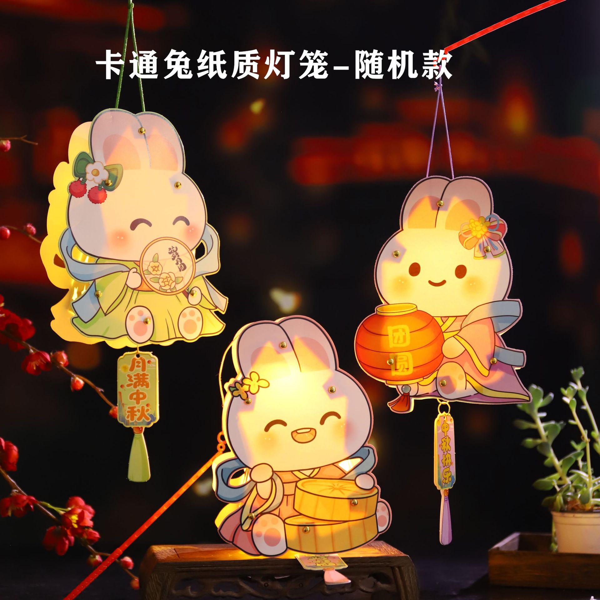 中秋节手提发光灯笼马年兔子花灯幼儿园手工材料包夜市摆摊小礼品