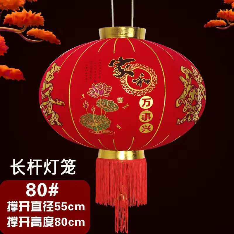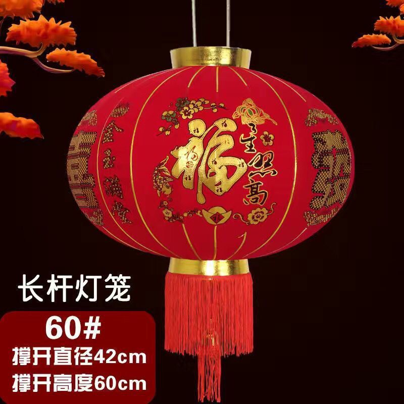 新年大红灯笼一对春节过年植绒布挂饰阳台户外大门口喜庆装饰灯笼