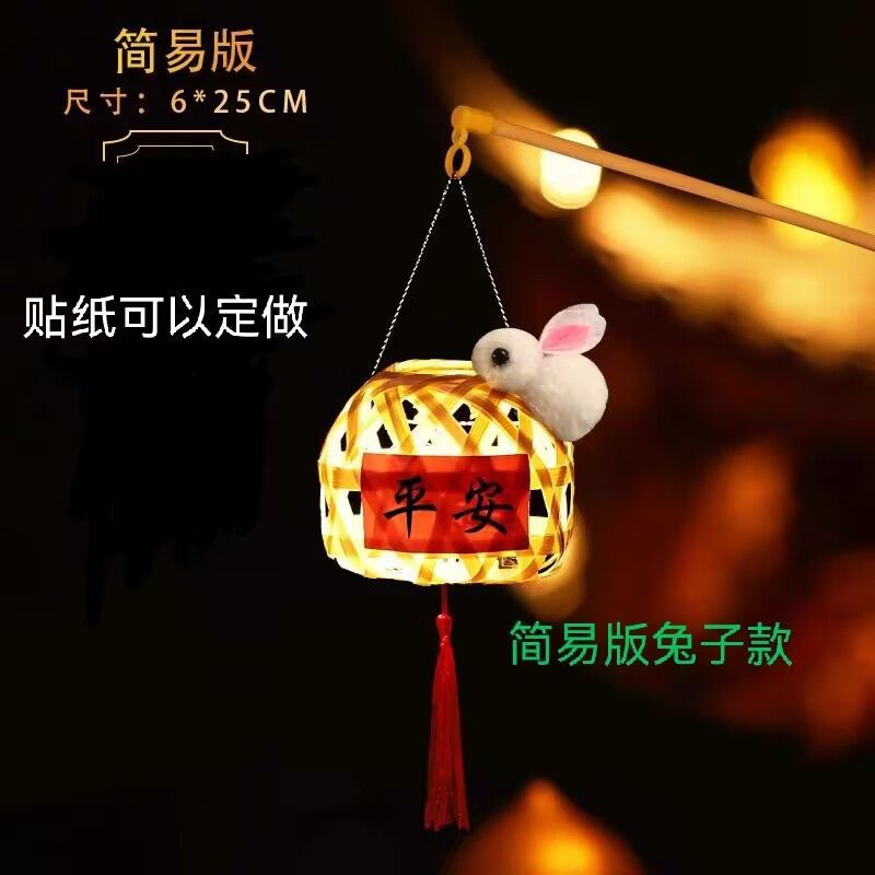 中秋节DIY复古风竹编小灯笼儿童手提发光花灯元旦竹编摆地摊灯笼