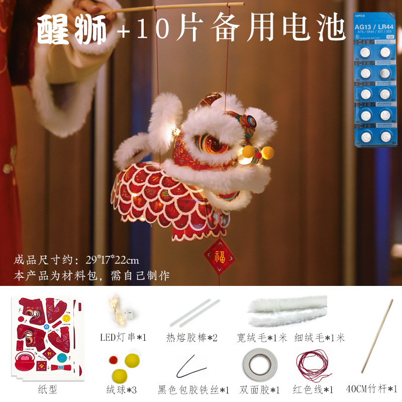 元宵节书法灯笼手工diy材料包儿童古风木质手提蝴蝶发光兔子花灯