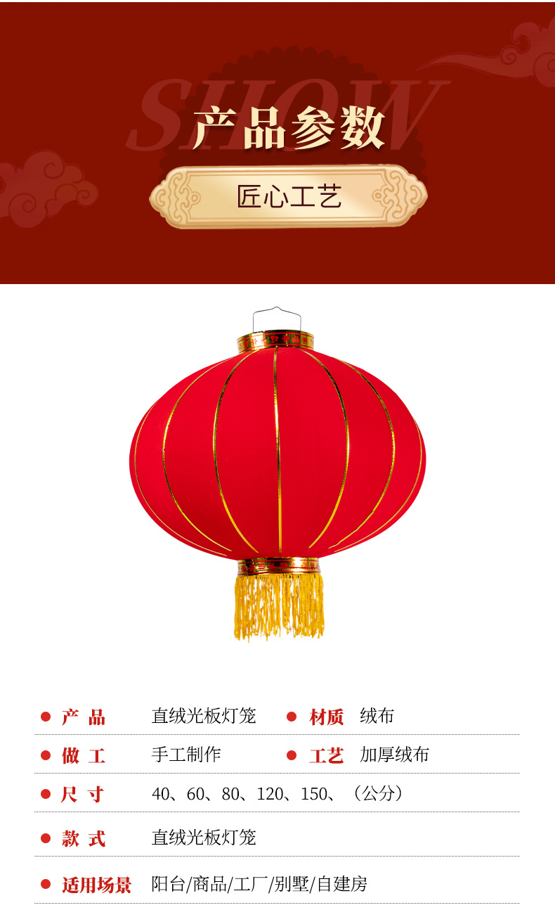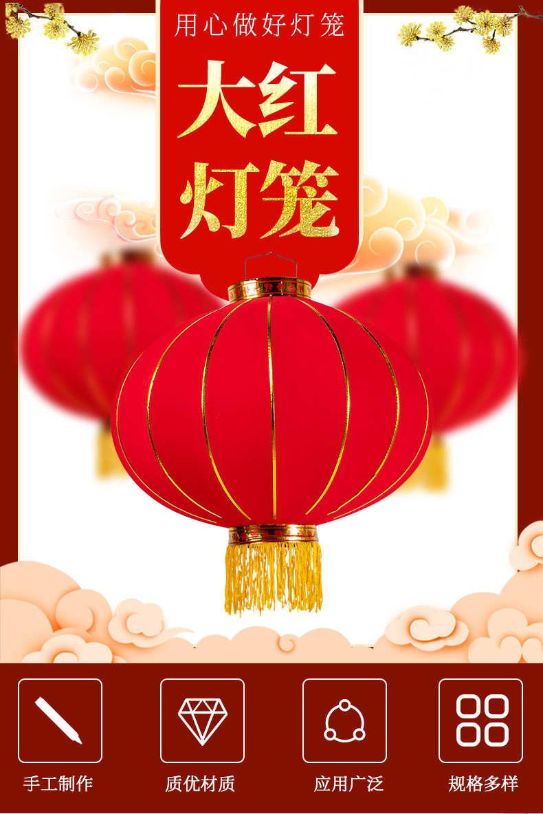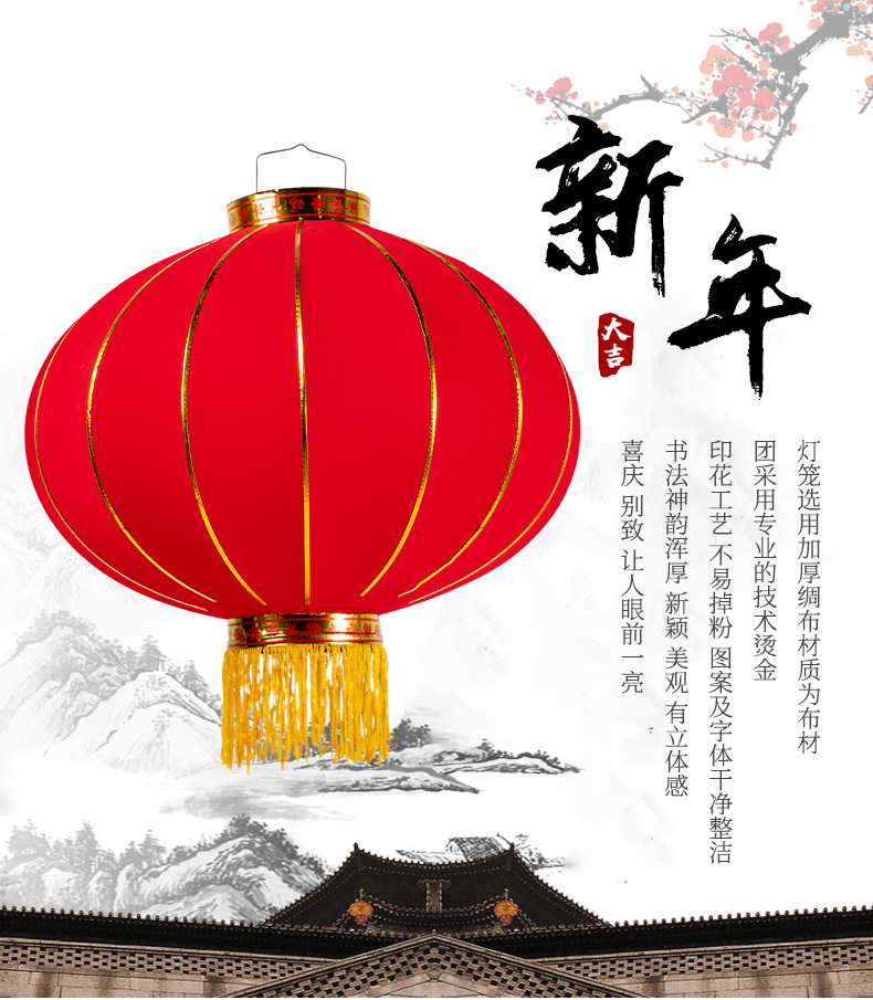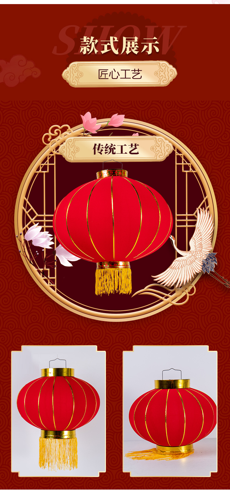 新年大红灯笼金边无字植绒灯笼绒布春节户外防水喜庆阳台装饰挂饰