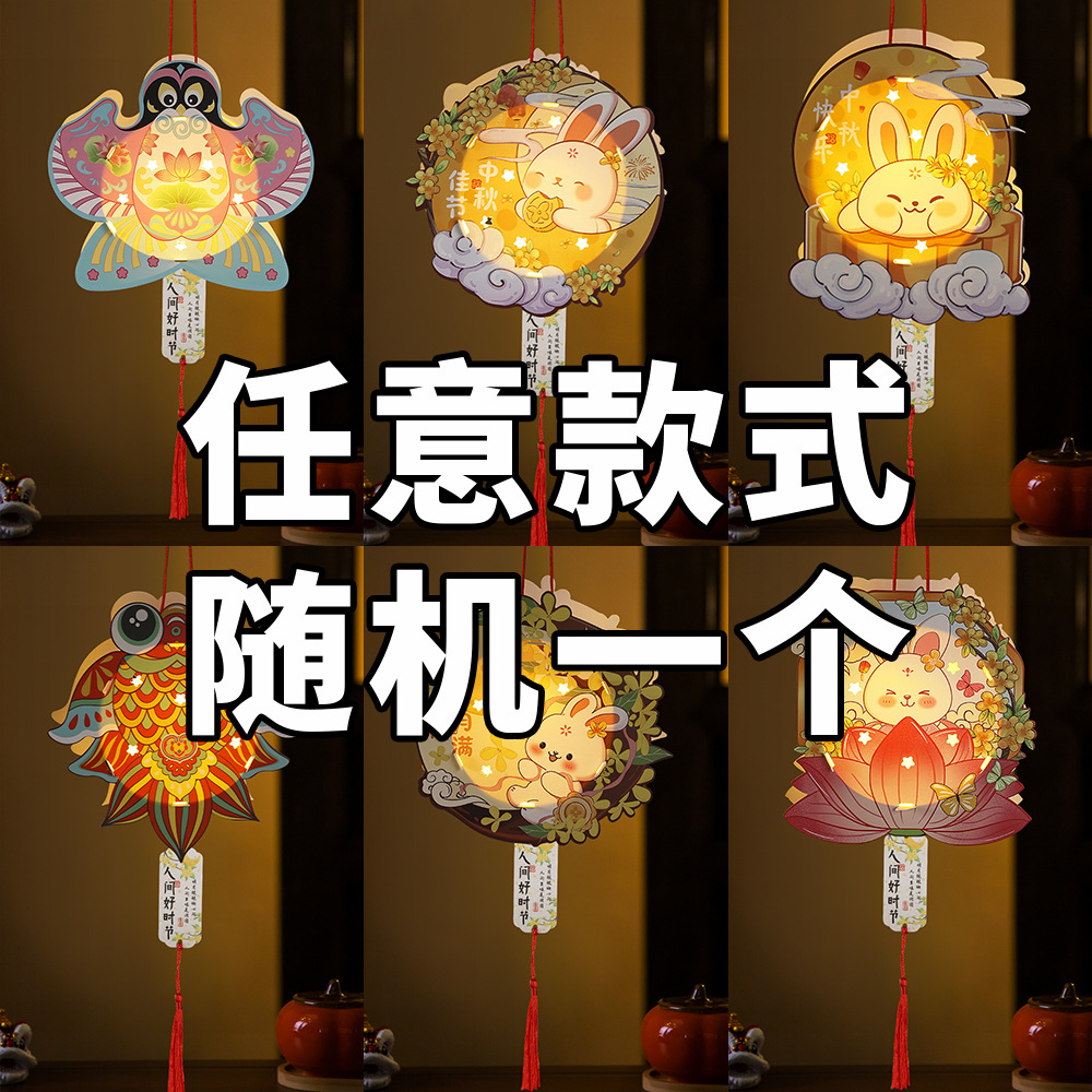 2025新款中秋灯笼手提花灯兔子灯儿童手工diy材料包 中式灯笼宫灯