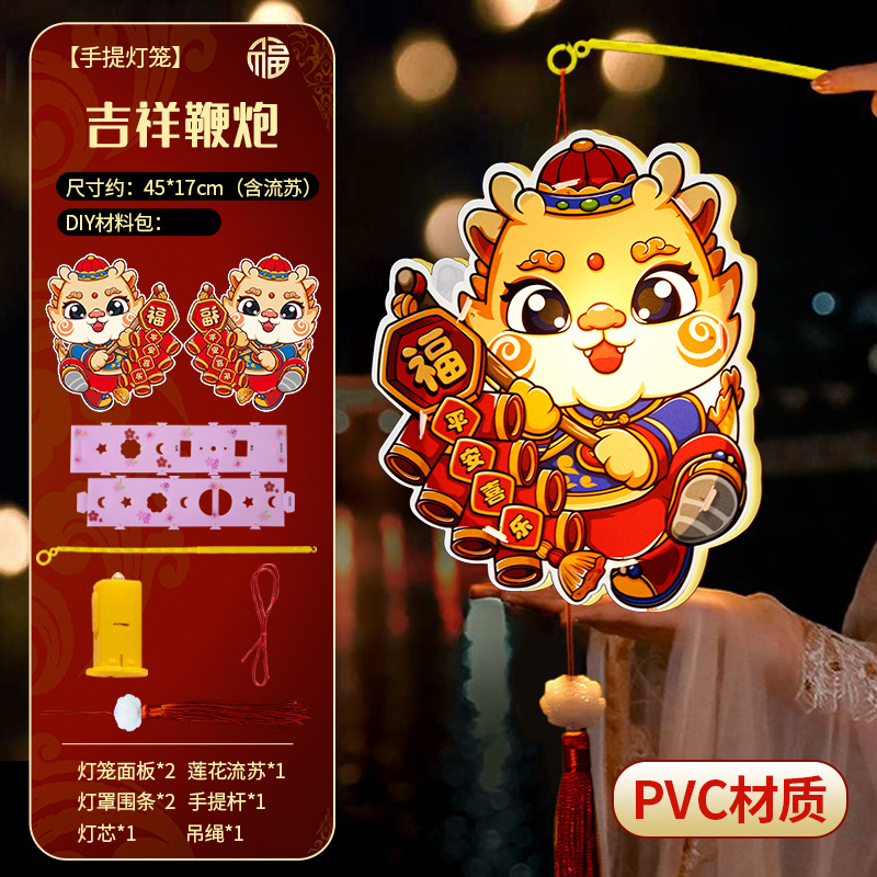 新年2025新款蛇年手提灯笼PVC发光投影花灯春节儿童手动diy材料包