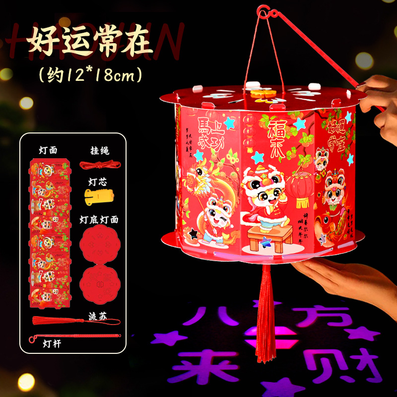 春节灯笼八面走马灯投影幼儿园儿童手工diy材料包手提花灯新年款