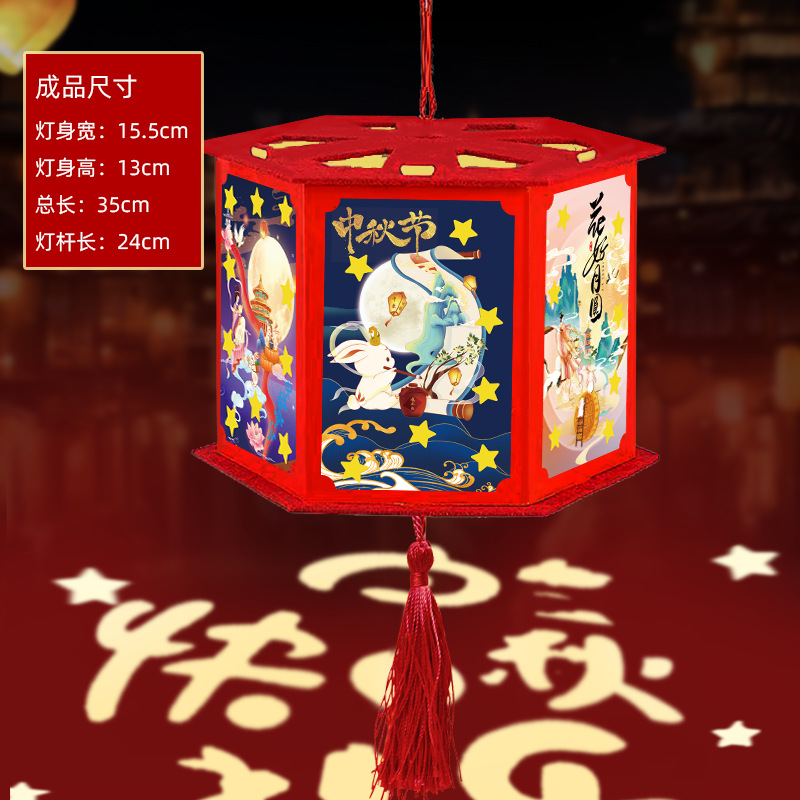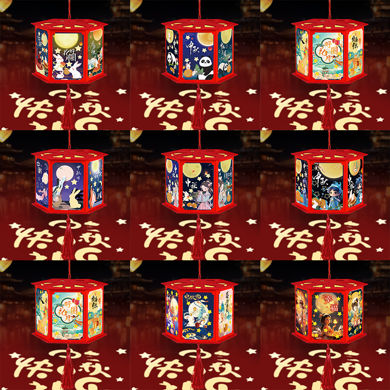 中秋节灯笼材料包家庭团圆灯笼学校投影走马灯发光儿童手提国潮
