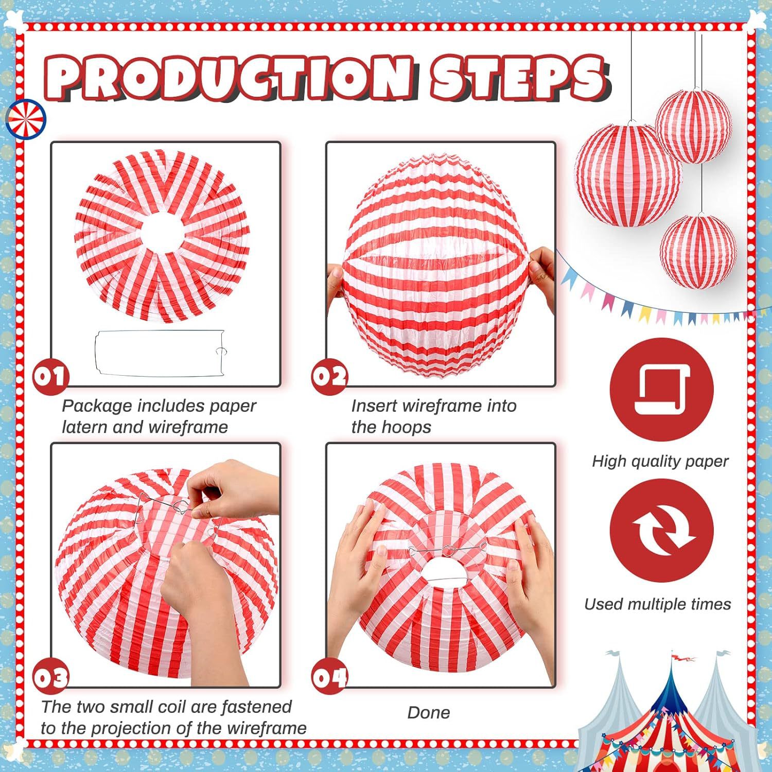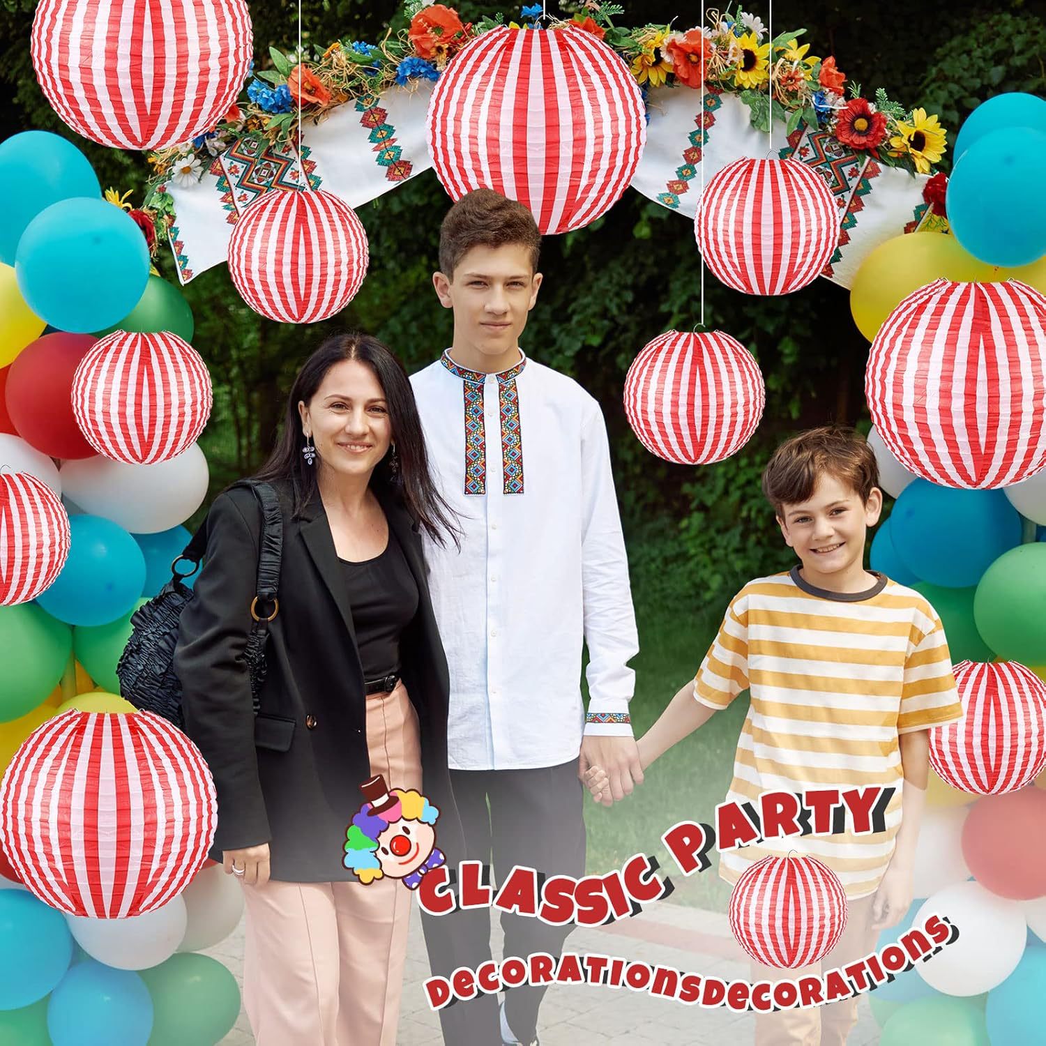 狂欢节红白条纹纸灯笼装饰马戏团主题儿童生日派对悬挂纸灯笼挂饰