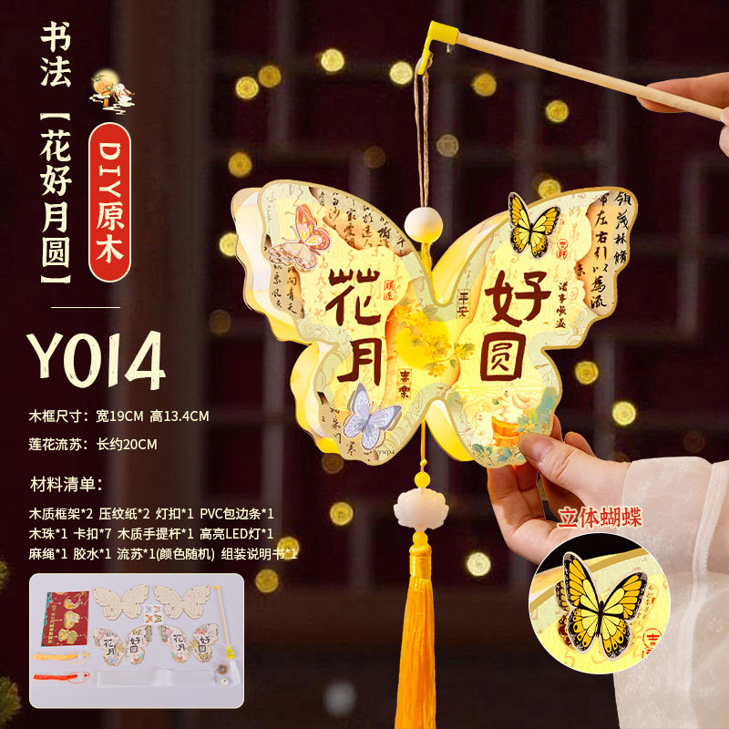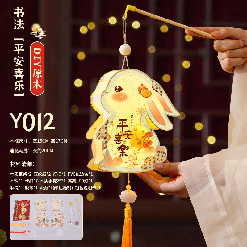中秋节原木灯笼手提兔子发光灯笼书法宫灯儿童diy手工材料包厂家