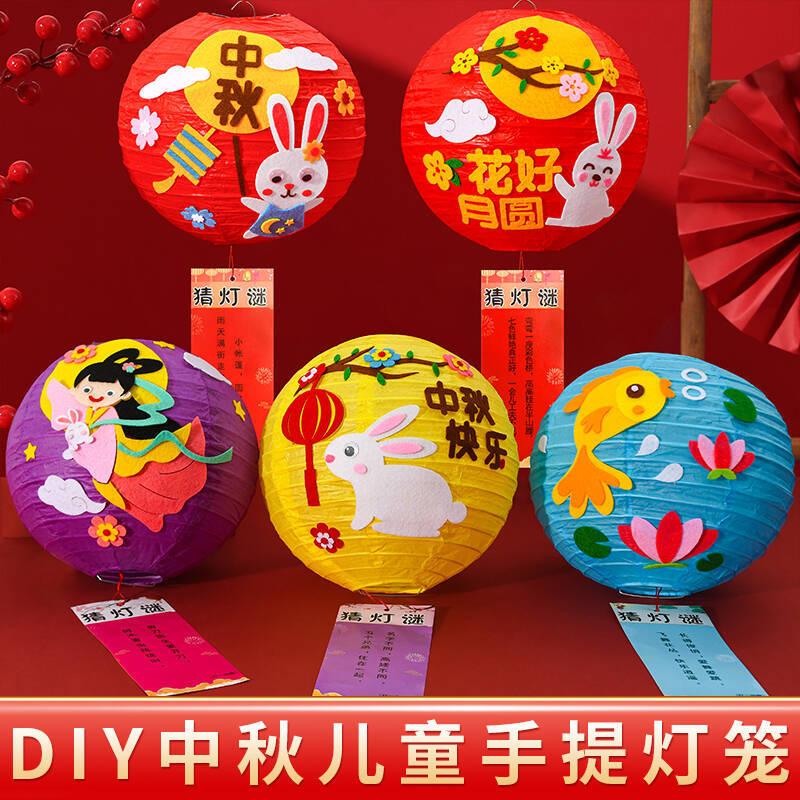 diy灯笼手工材料包中秋节幼儿园儿童小学生自制手提古风兔子花灯
