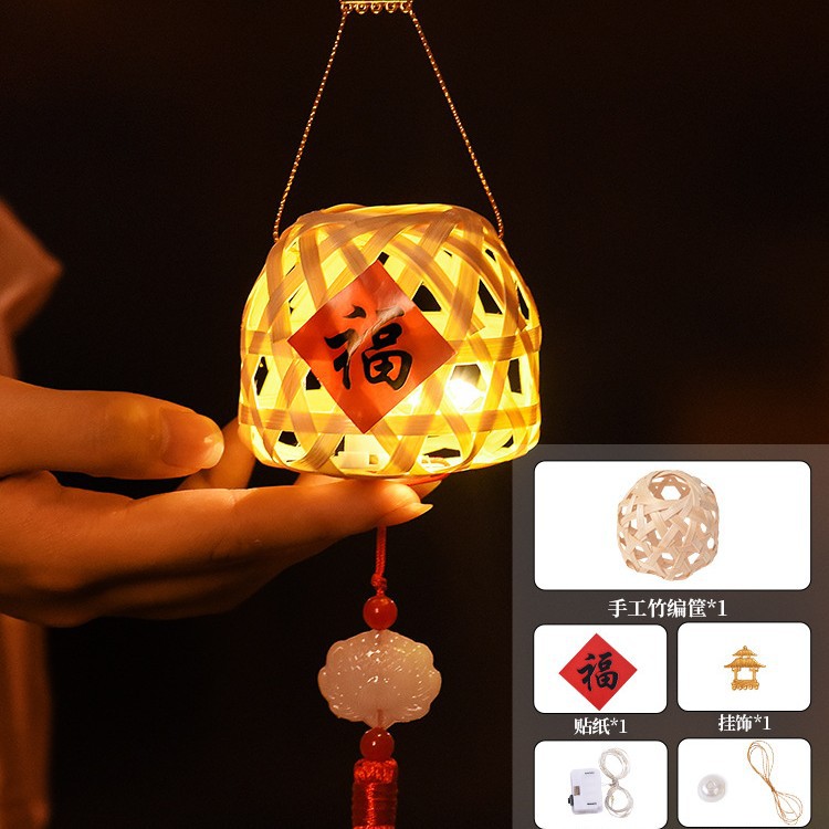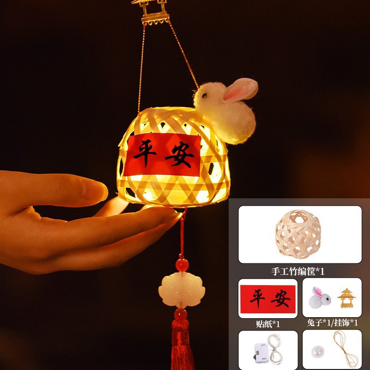 新年竹编小灯笼新款国风儿童春节兔子花灯竹编手工diy手提灯摆摊
