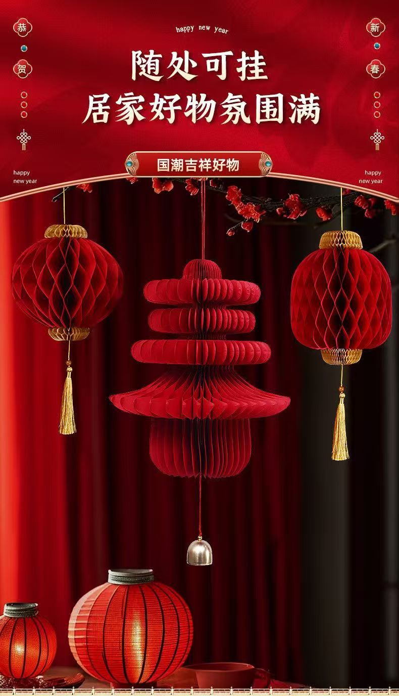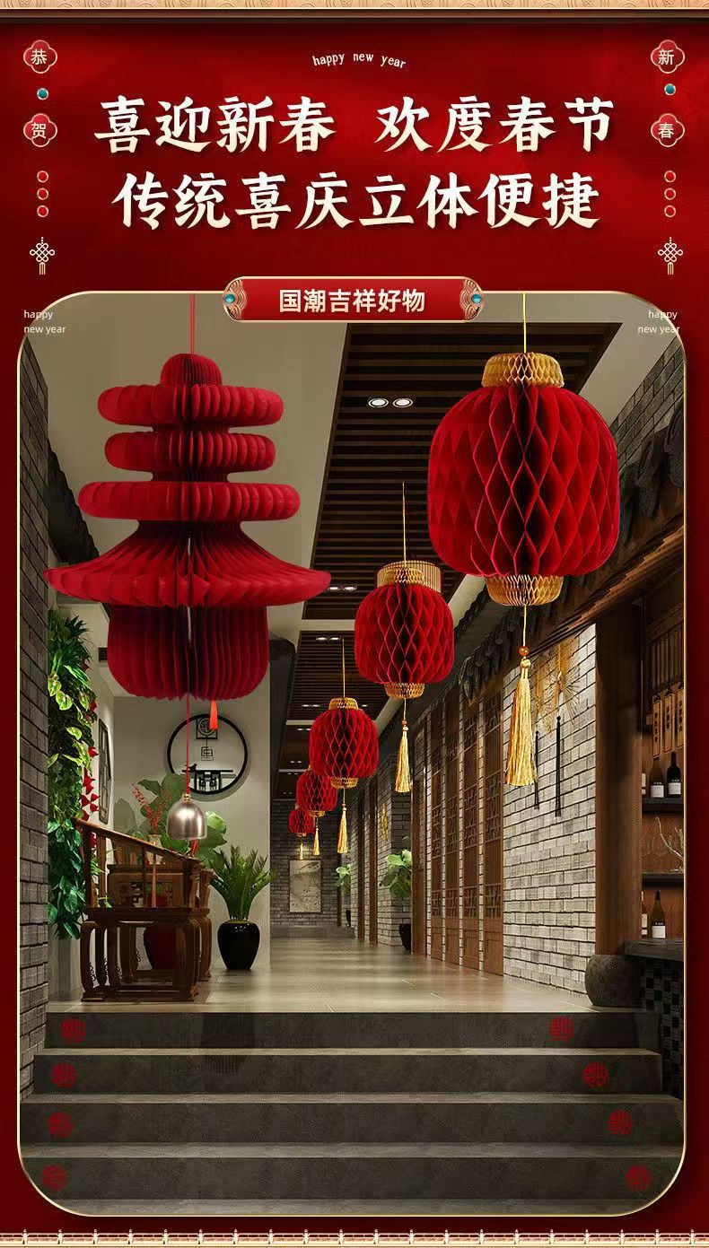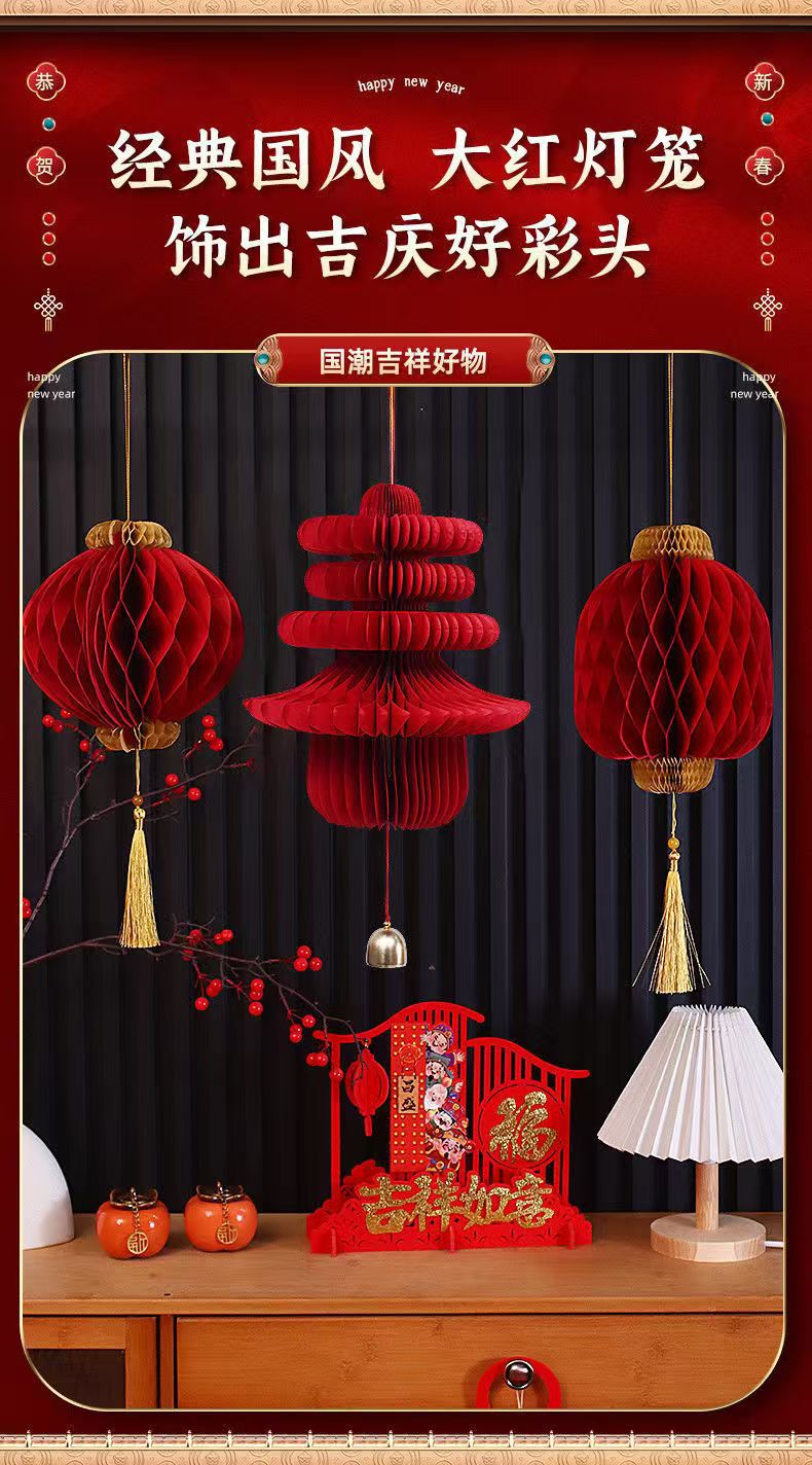 新年立体春字蜂窝灯笼挂件葫芦蜂窝球装饰品房门壁挂春节过年布置