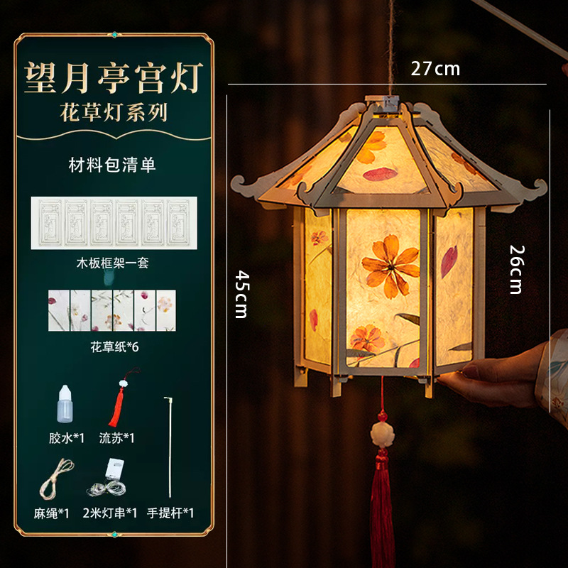 新年春节古风灯笼儿童手工diy花草纸材料包马年手提花灯过年宫灯
