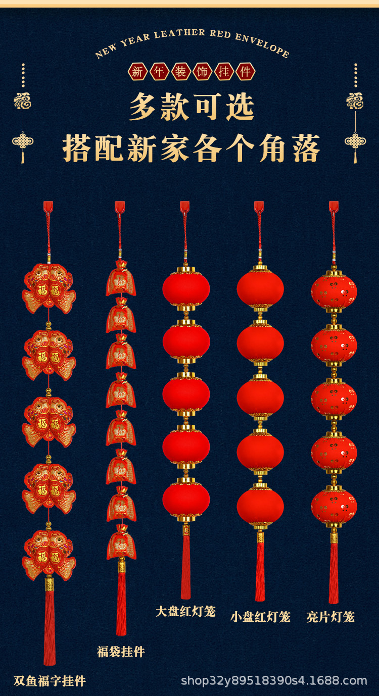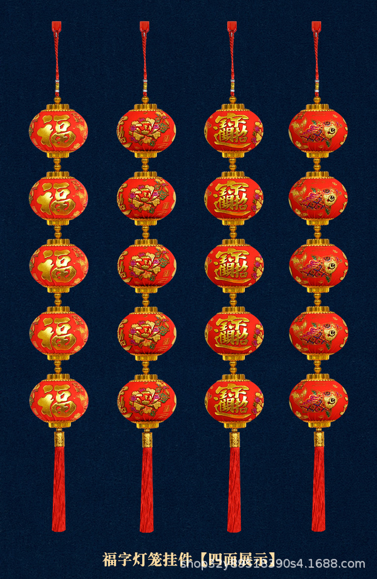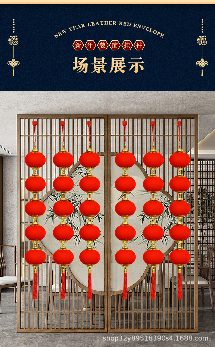 大红植绒灯笼串新年春节挂件装饰小灯笼挂饰室内场景布置 灯笼挂