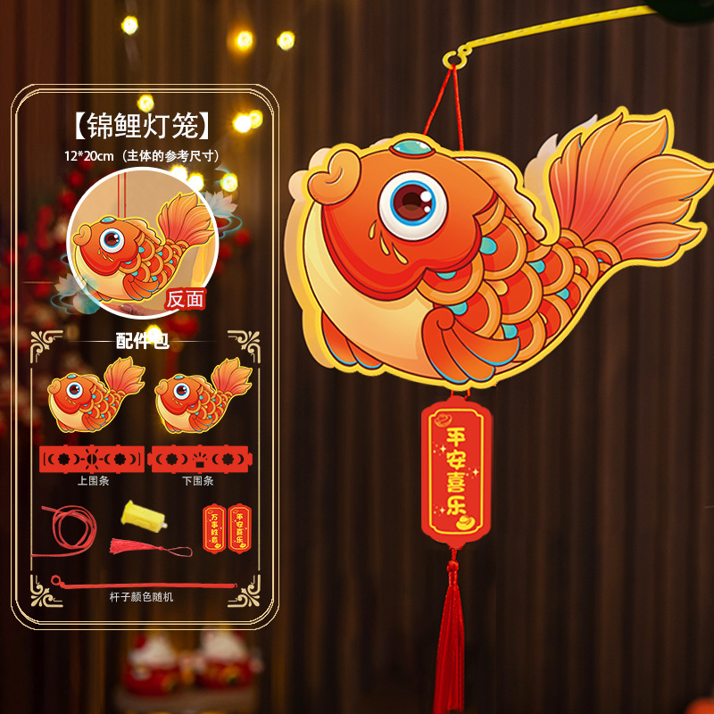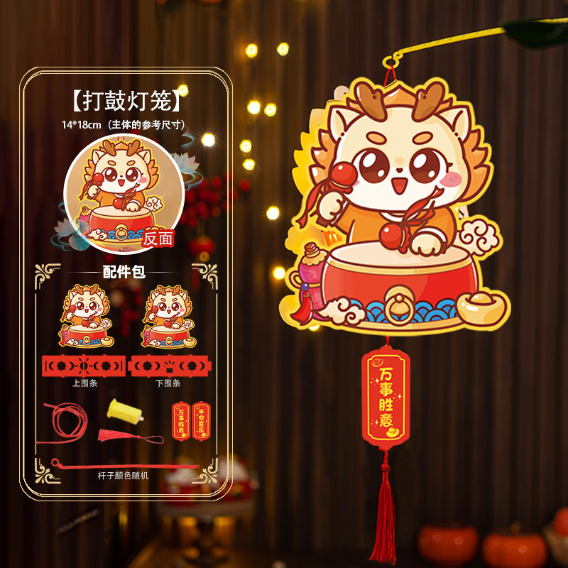 元宵节国潮花灯新年新款马年灯笼儿童手提发光挂2026手工diy材料