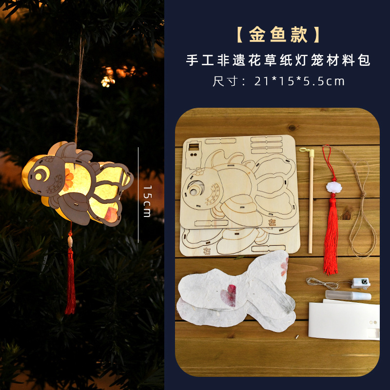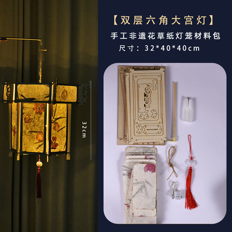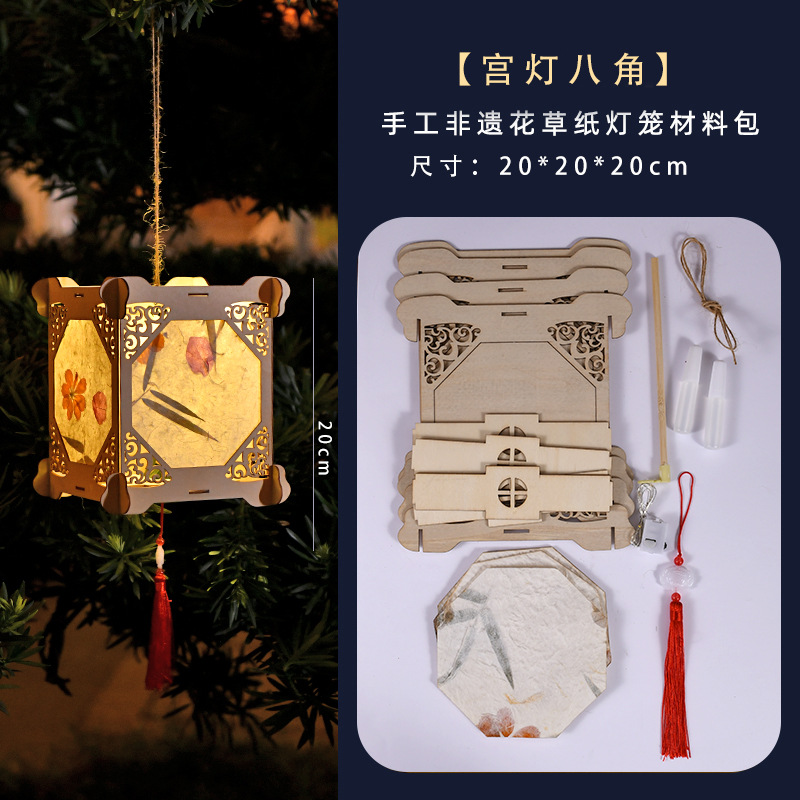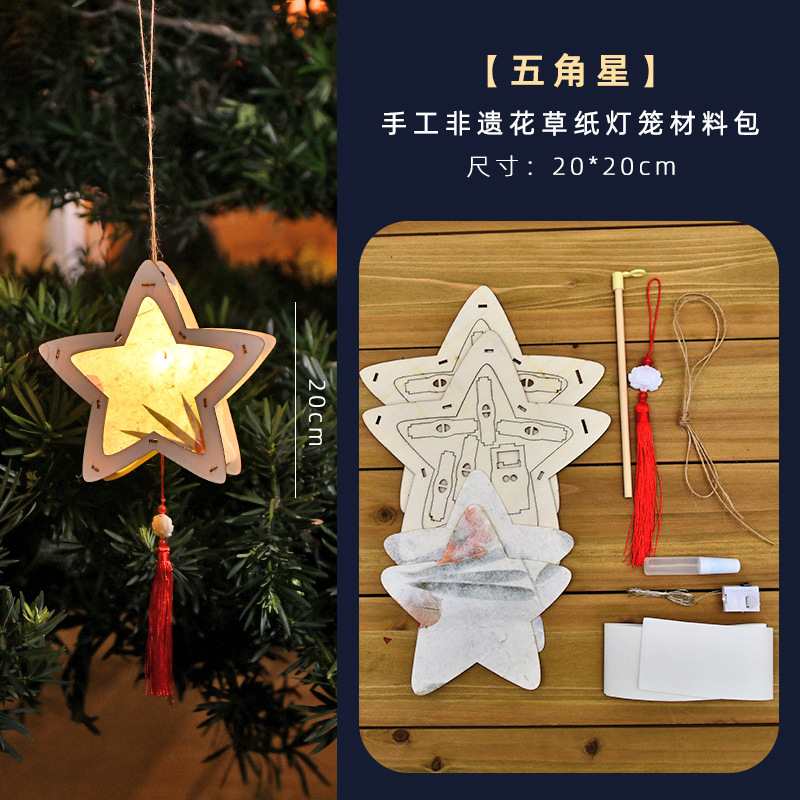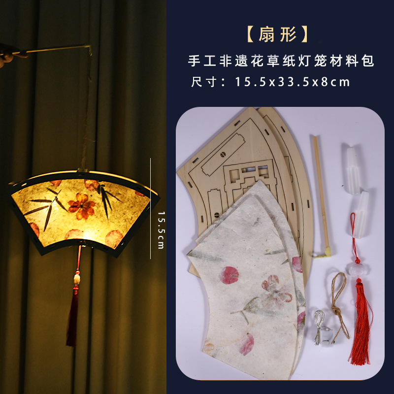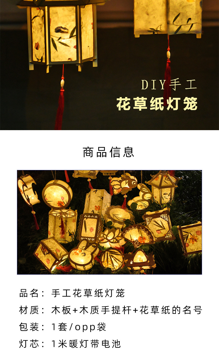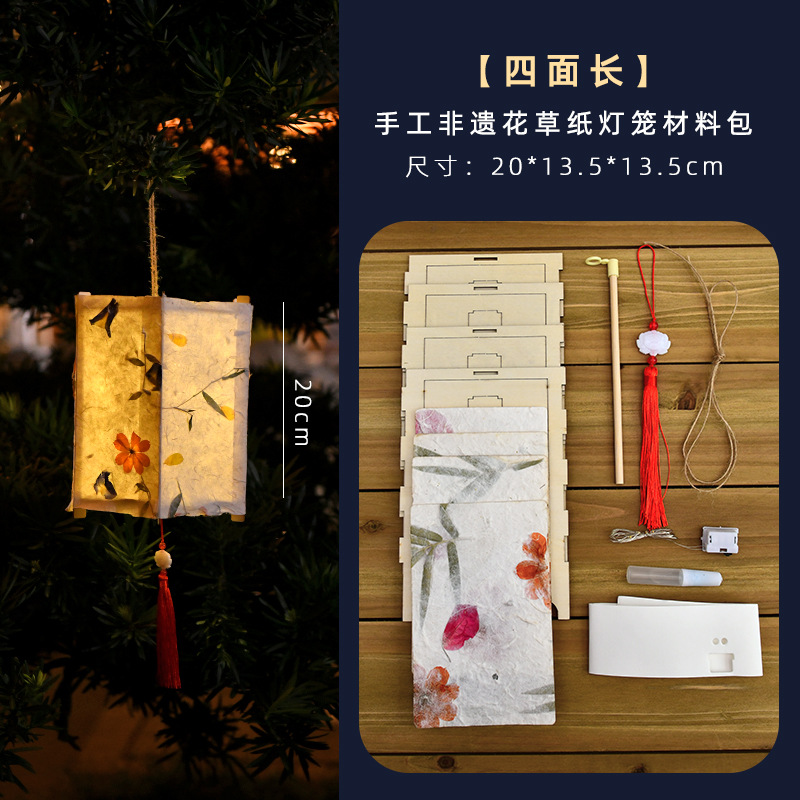 元旦节花草纸灯笼diy手工材料包儿童创意手提古风灯笼幼儿园批发