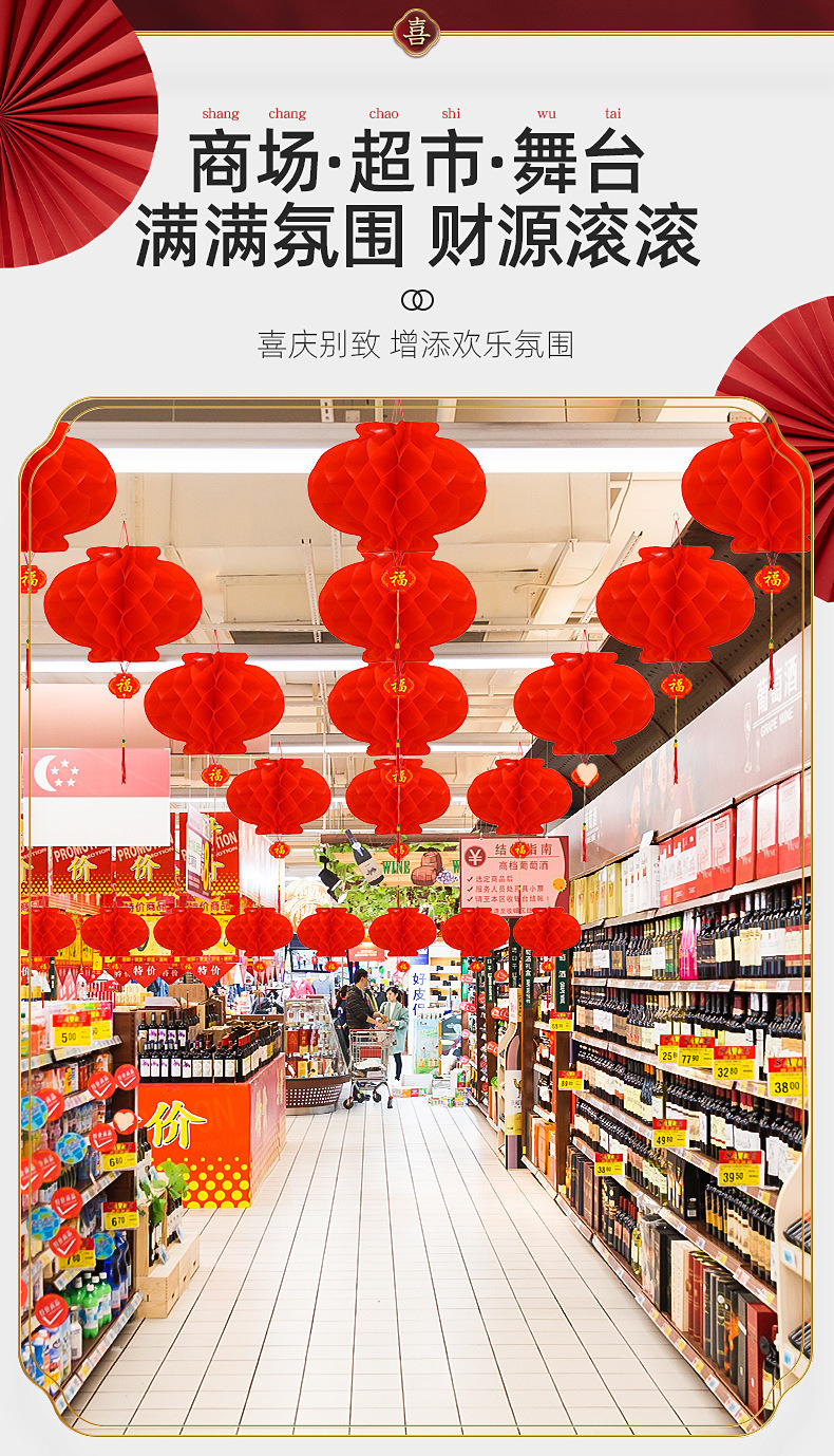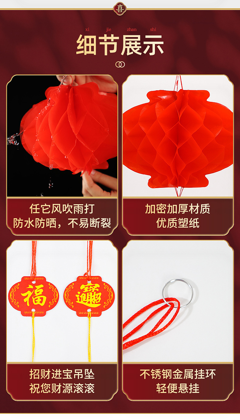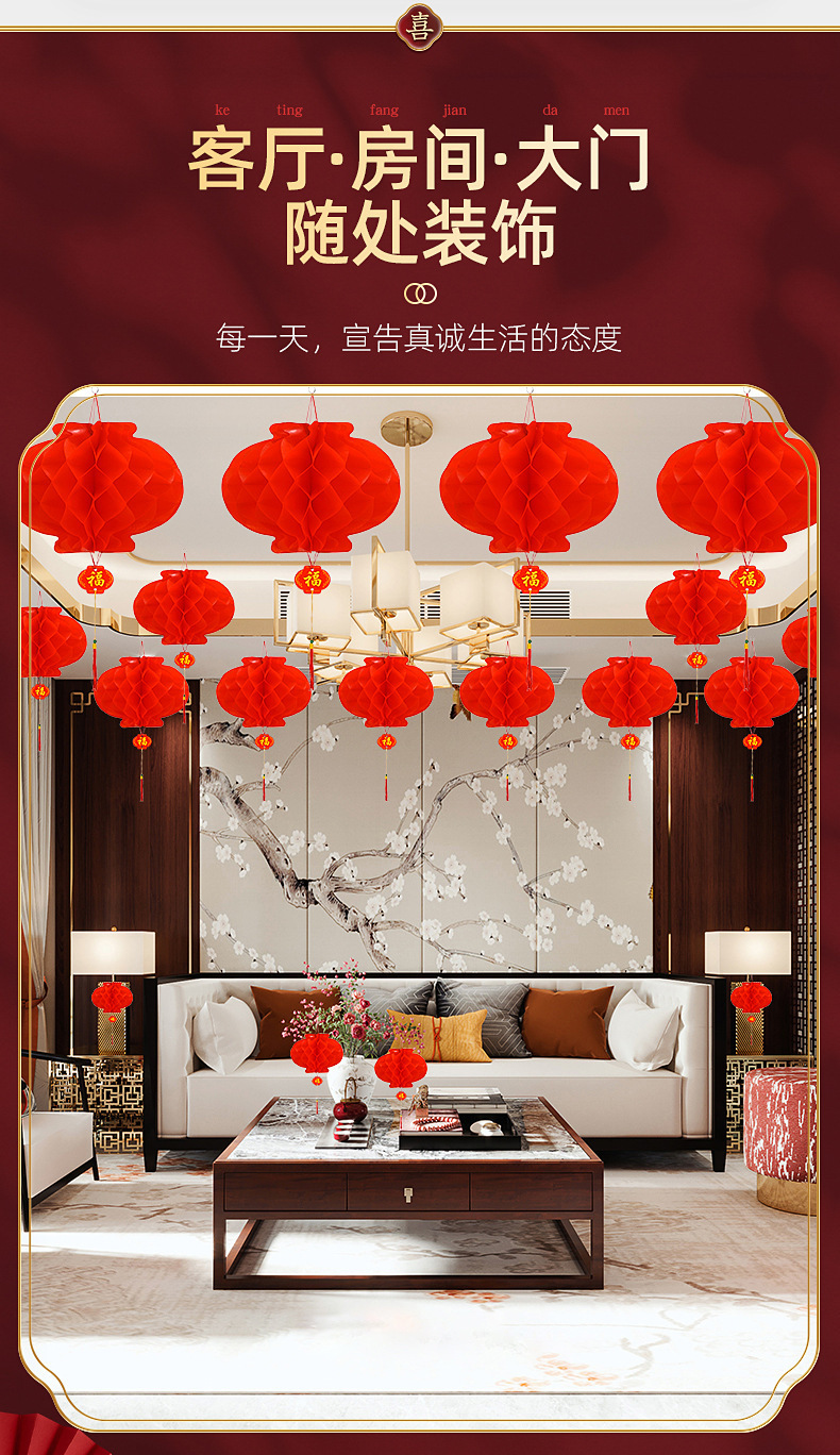 结婚布置蜂窝小灯笼挂饰龙年新年院子婚礼装饰户外防水大红纸灯笼