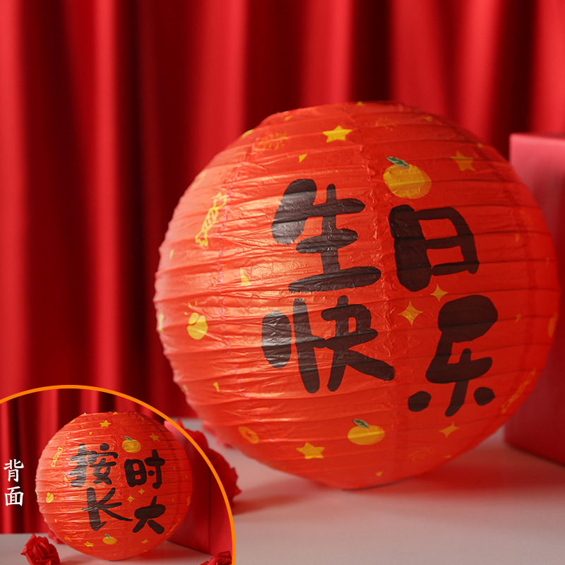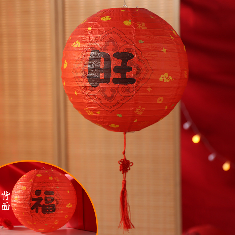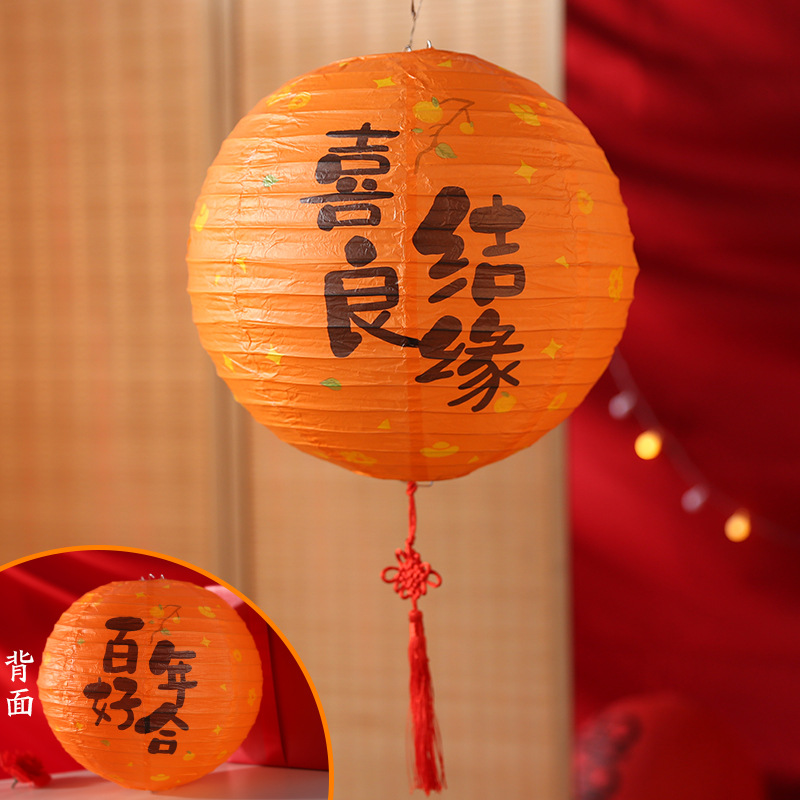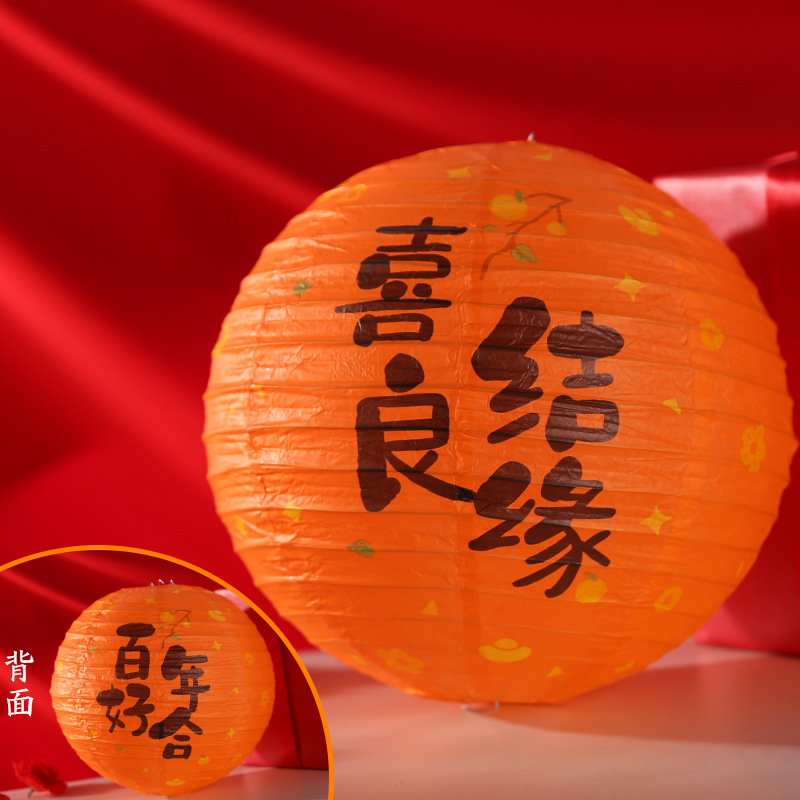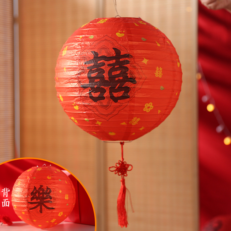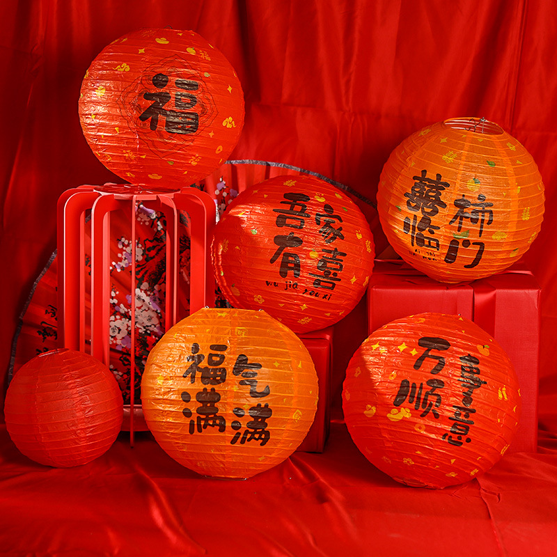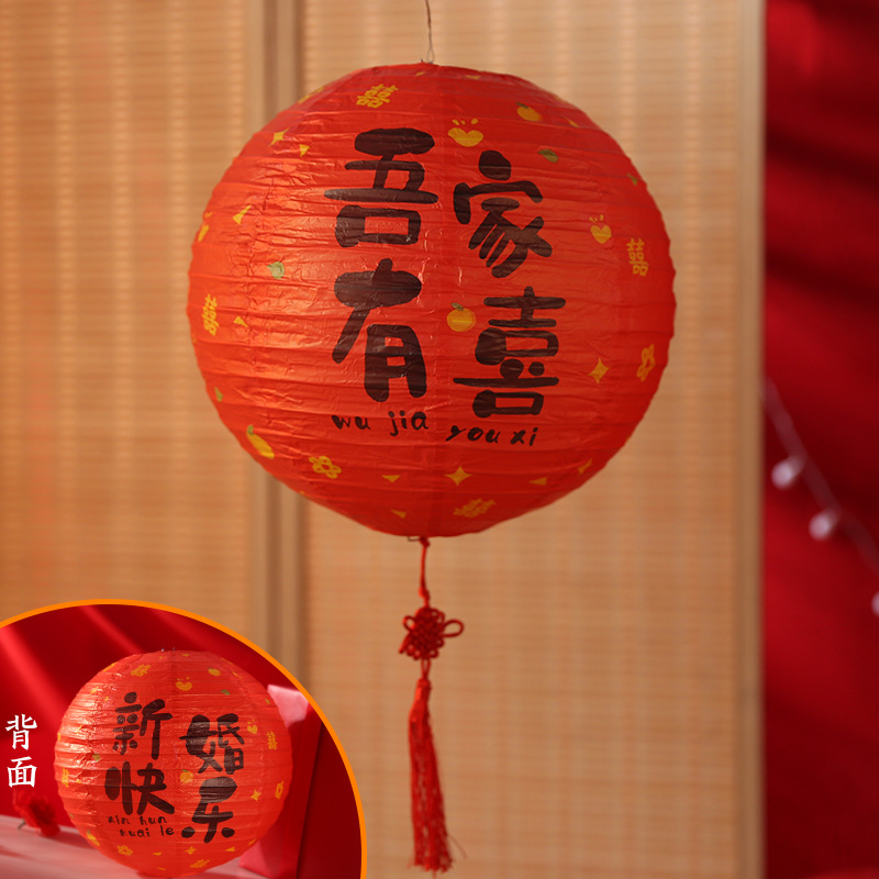 结婚婚房婚礼灯笼国风婚礼福气满满生日卧室布置圆形福字纸灯笼