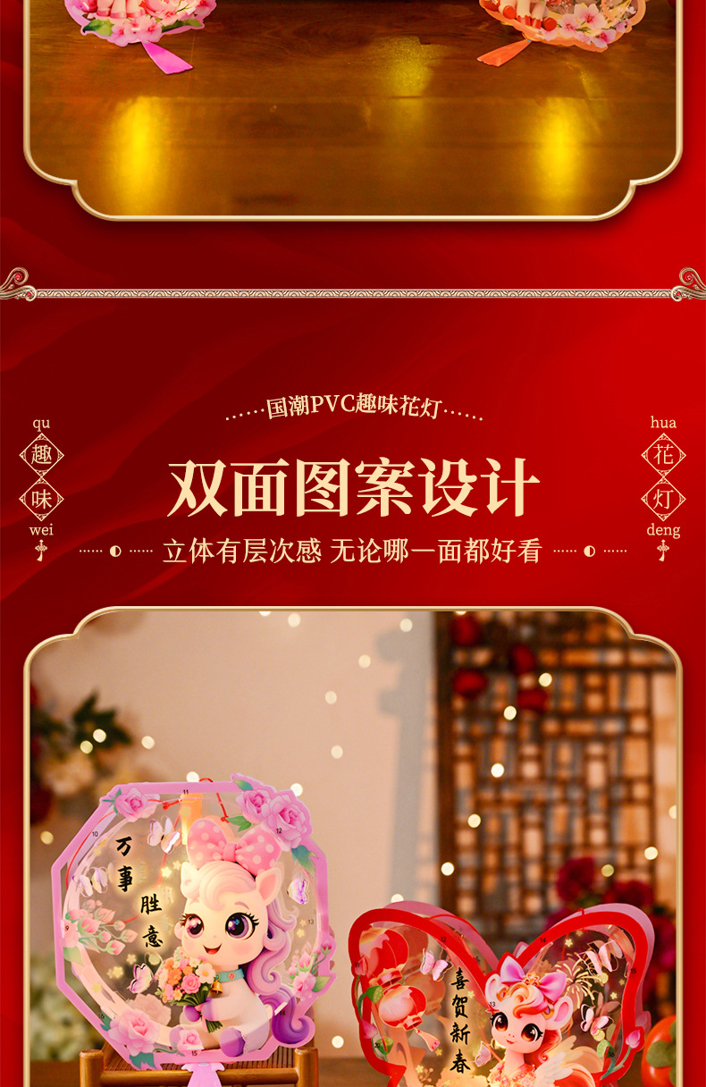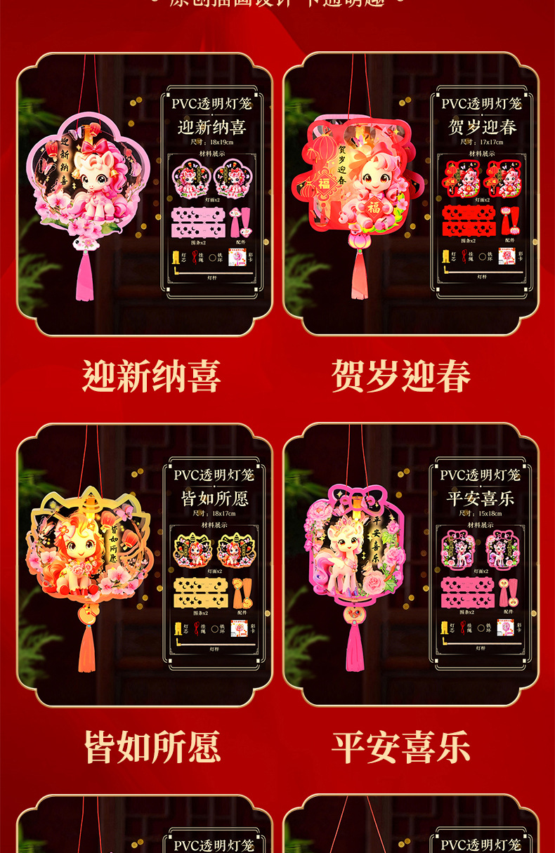新年春节灯笼diy手工制作材料包发光卡通pvc灯笼透明镭射灯笼款