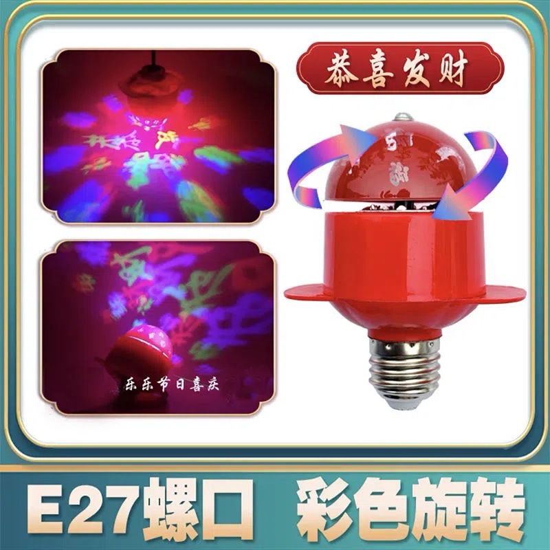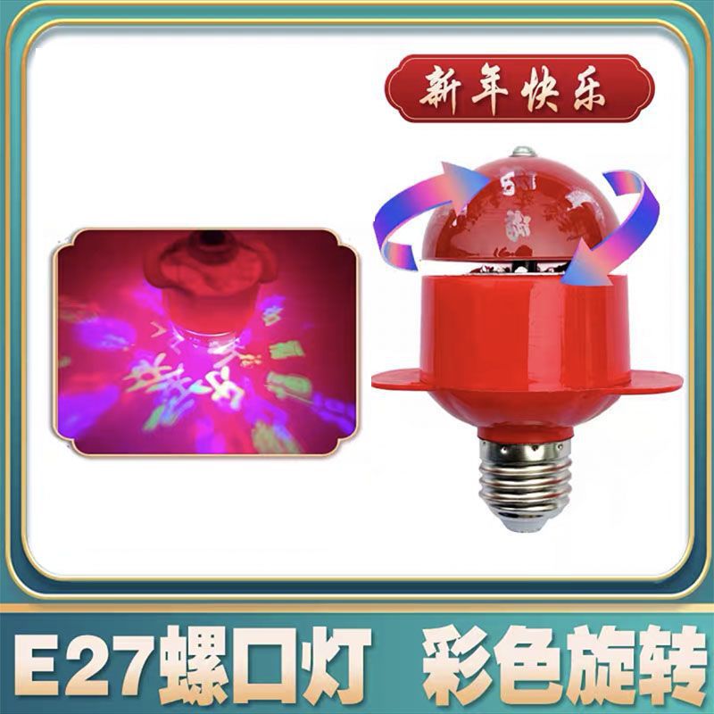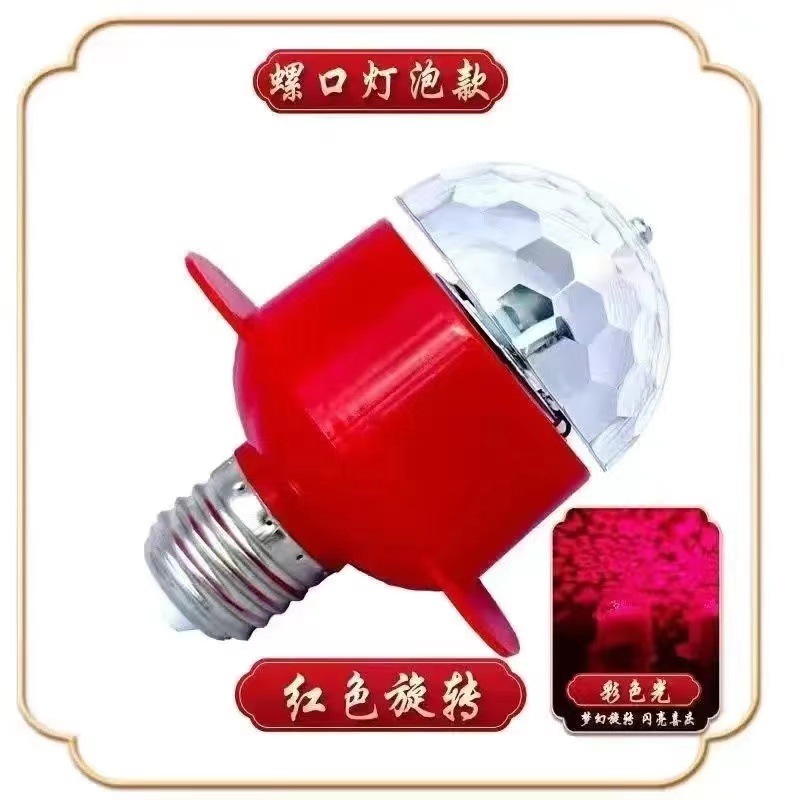 春节新年LED旋转彩光红光灯家用E27螺口灯泡灯笼伴侣户外宫灯配件